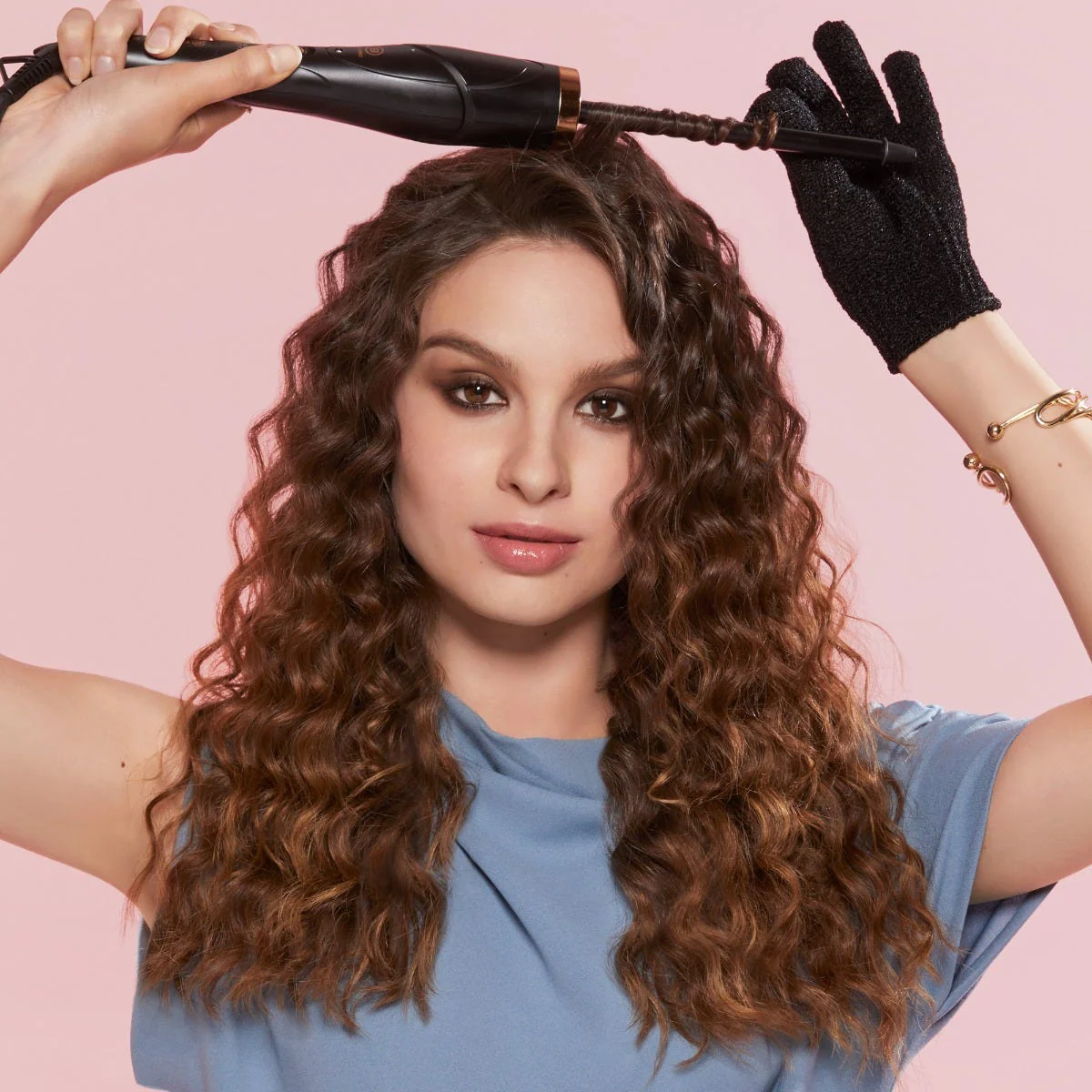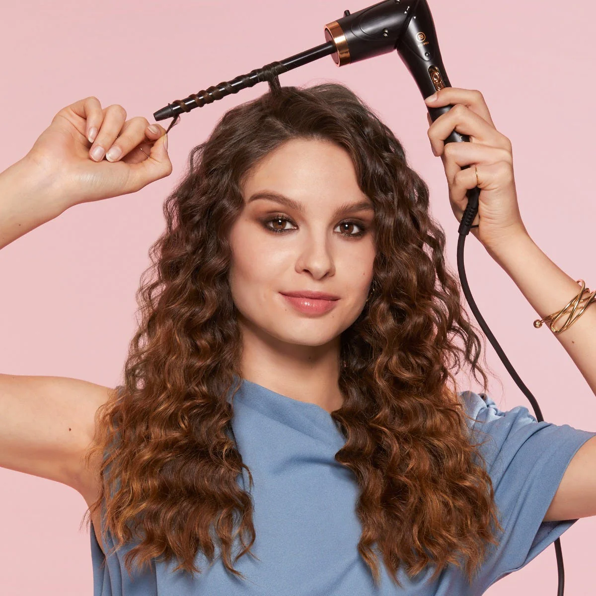 Con un revestimiento de cerámica, Sculpted Curls permite mantener la luminosidad del peinado ya que protege el cabello del calor y proporciona un efecto rizado estrecho y perfecto incluso con el pelo muy largo.