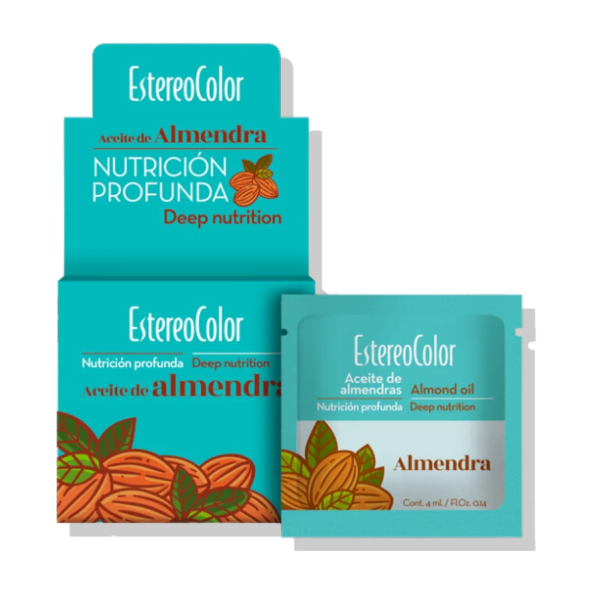 El Aceite de Almendras Estereocolor es un tratamiento capilar en formato sachet que nutre en profundidad, repara las puntas y aporta un brillo natural al cabello.