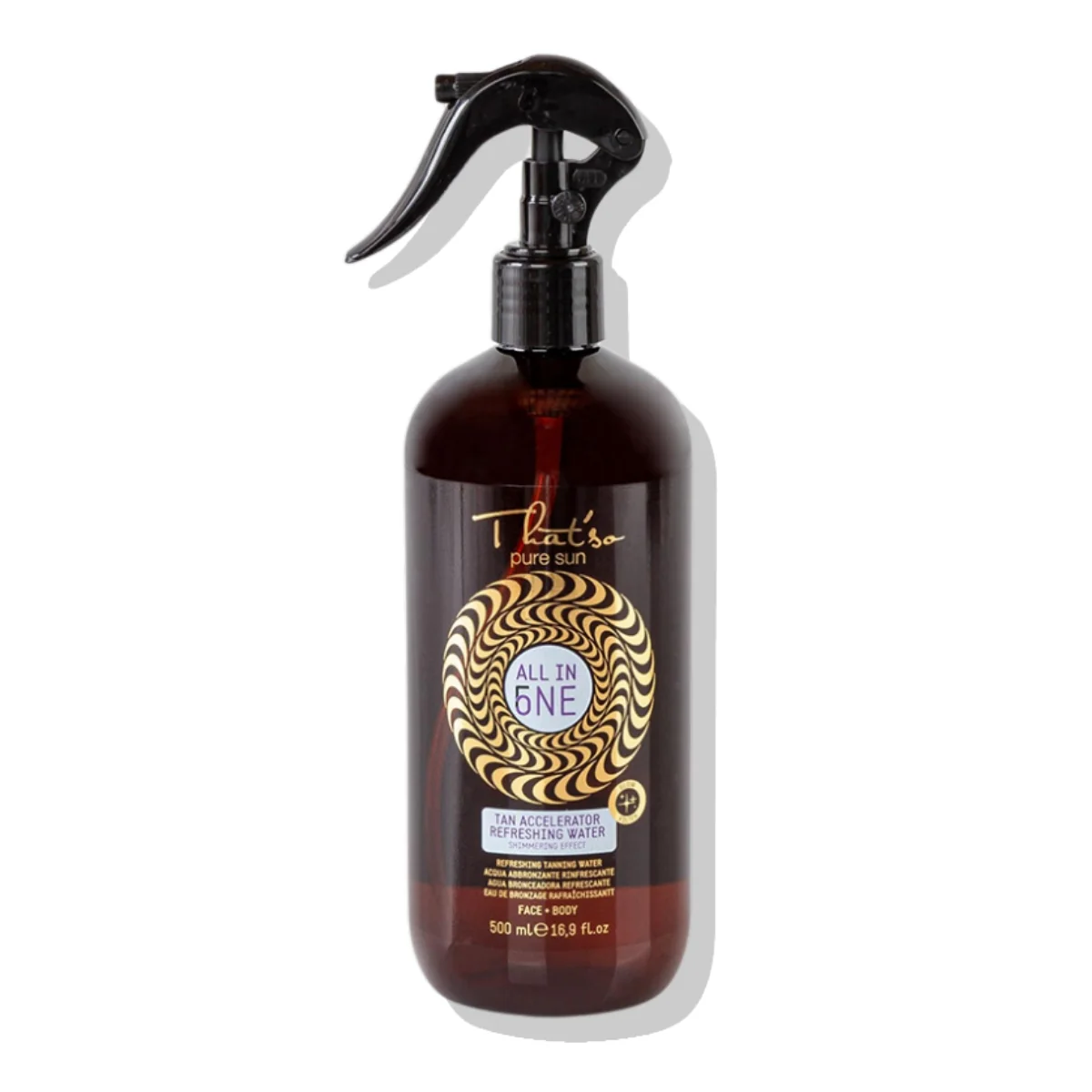 Acelerador de bronceado All In One ultrarrápido en aerosol que favorece el proceso natural de producción de melanina, garantizando que la piel tenga un bronceado uniforme e intenso.