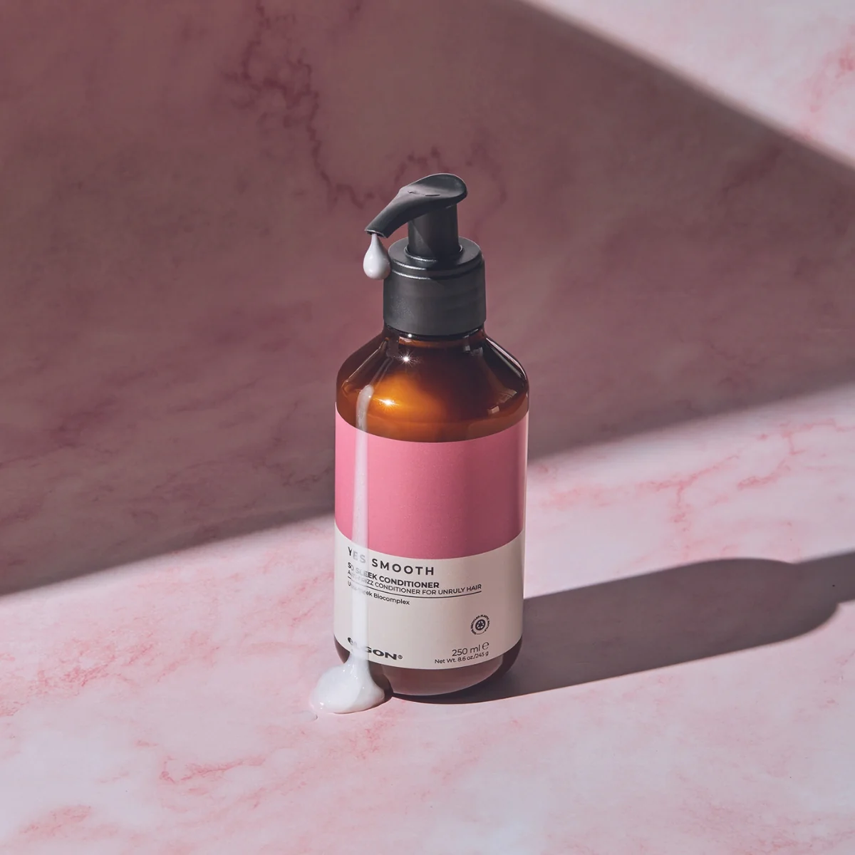 Después de limpiar tu cabello con Shampoo Anti Frizz Yes Smooth, aplica una pequeña cantidad de acondicionador en puntas y largos, deja actuar hasta 5 minutos y luego enjuaga bien.