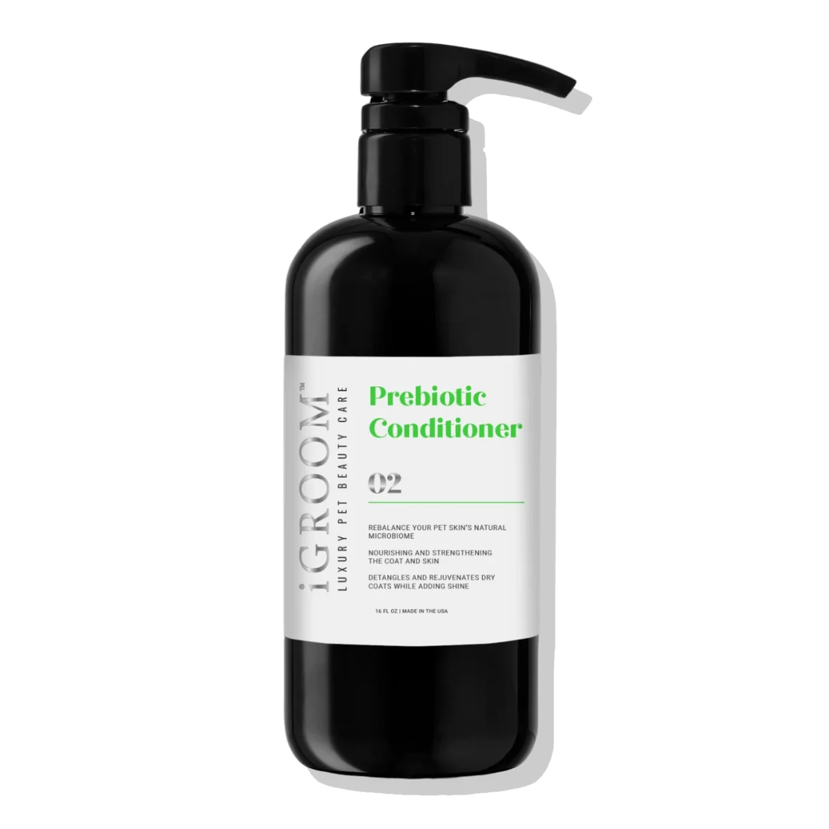 El Acondicionador con prebiótico iGroom ayuda a promover el crecimiento de bacterias buenas mientras acondiciona suavemente el pelaje y la piel con los ingredientes prebióticos.
