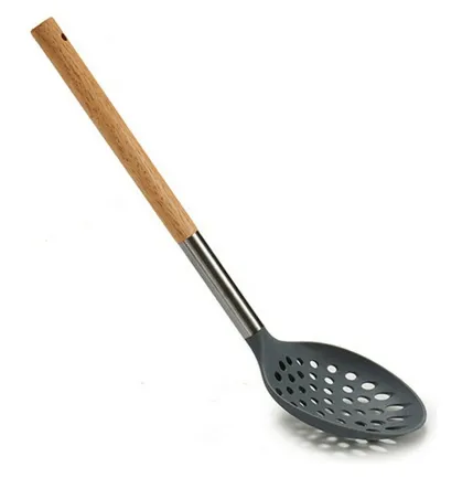 La espumadera BOIS de ALZA es esencial para retirar espumas e impurezas de caldos y sopas. Su cabezal de nylon resistente al calor es seguro para todo tipo de utensilios de cocina. El cuerpo de acero inoxidable asegura durabilidad, mientras que la empuñadura de madera de acacia proporciona un toque de elegancia y comodidad en el manejo. Incluye un orificio para colgar y facilitar su almacenamiento.
