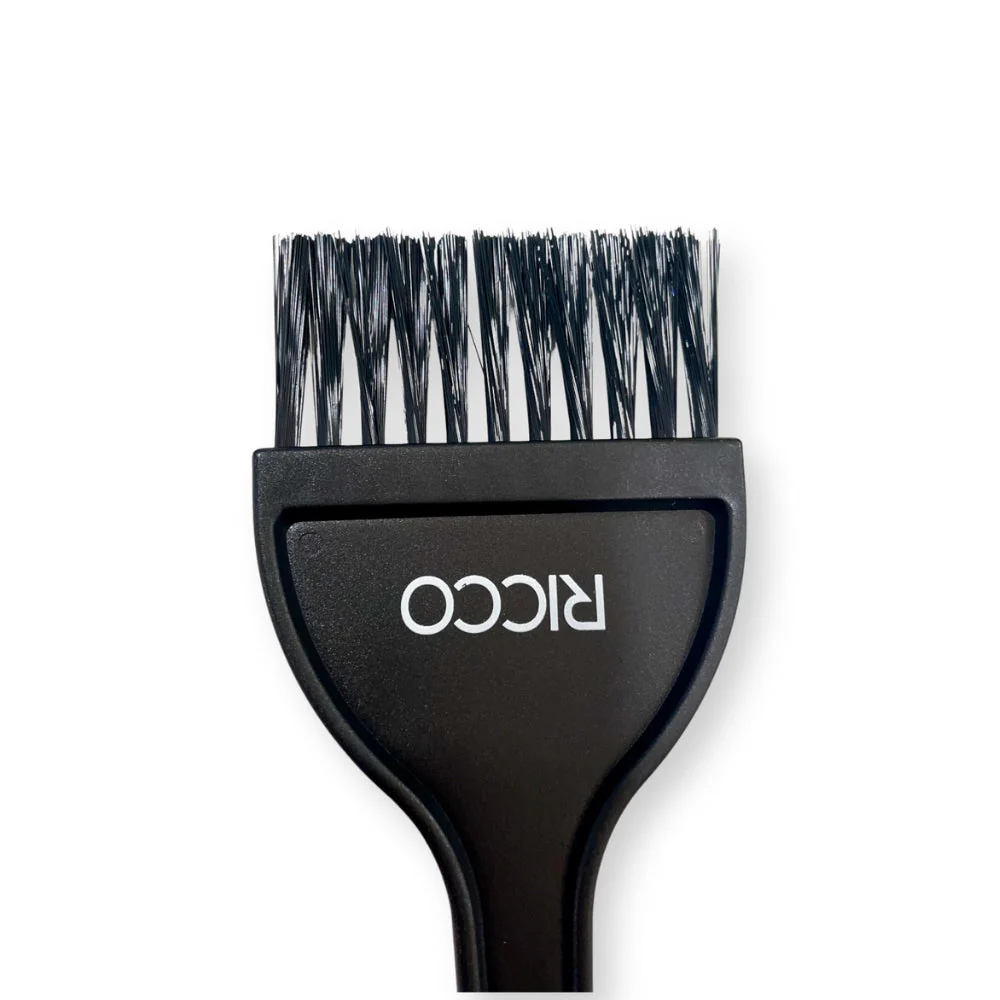 Logra una coloración profesional con la Brocha Tintura Ancha Ricco, diseñada para ofrecer una máxima cobertura del cabello y una aplicación uniforme del color.
