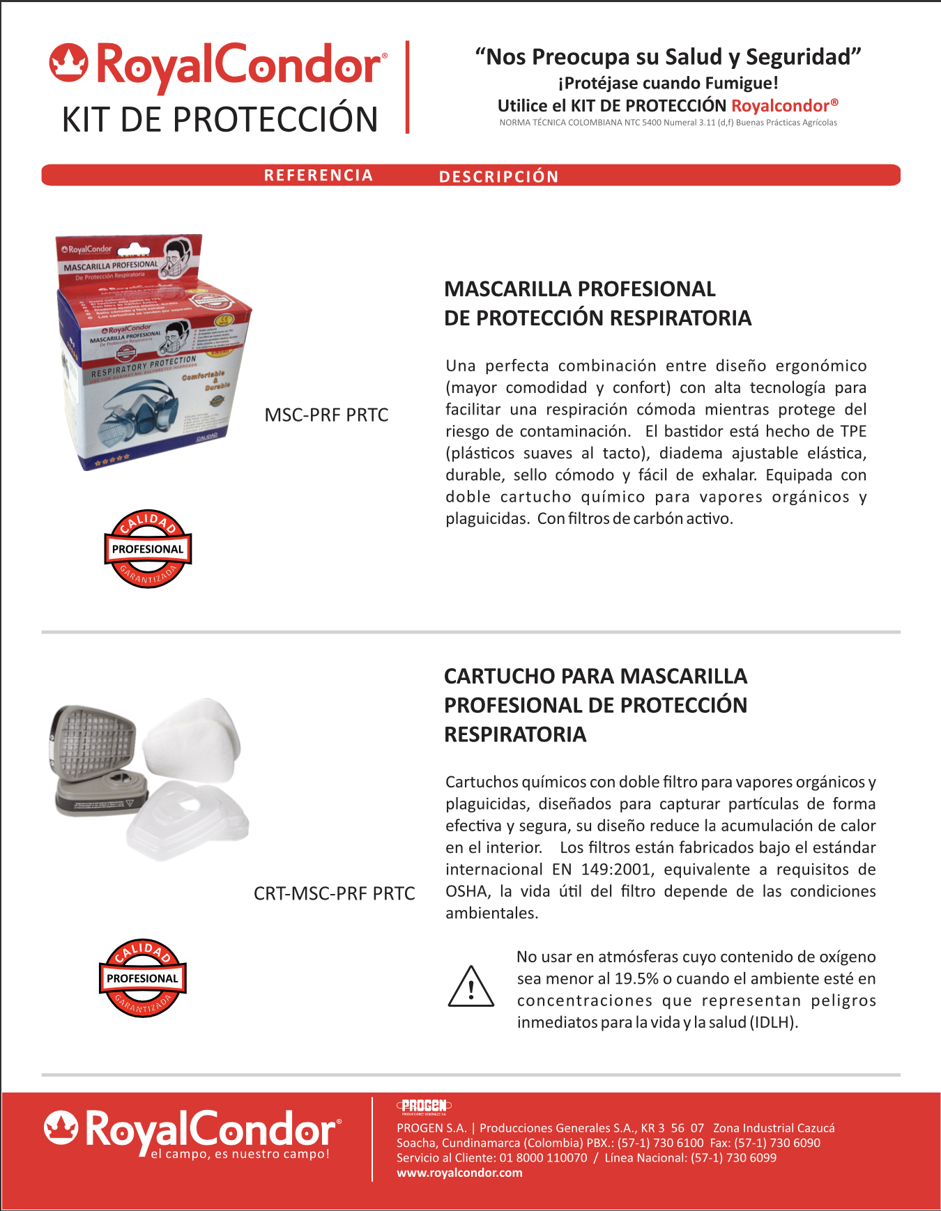 Tienen doble filtro para vapores orgánicos y plaguicidas. Diseñados para capturar partículas de forma efectiva y segura, su diseño reduce la acumulación de calor en el interior. No usar en atmósferas cuyo contenido de oxígeno sea menor al 19.5% o cuando el ambiente esté en concentraciones que representan peligros inmediatos para la vida y la salud (IDLH). Perfectos para aplicaciones agrícolas y en procesos de desinfección.