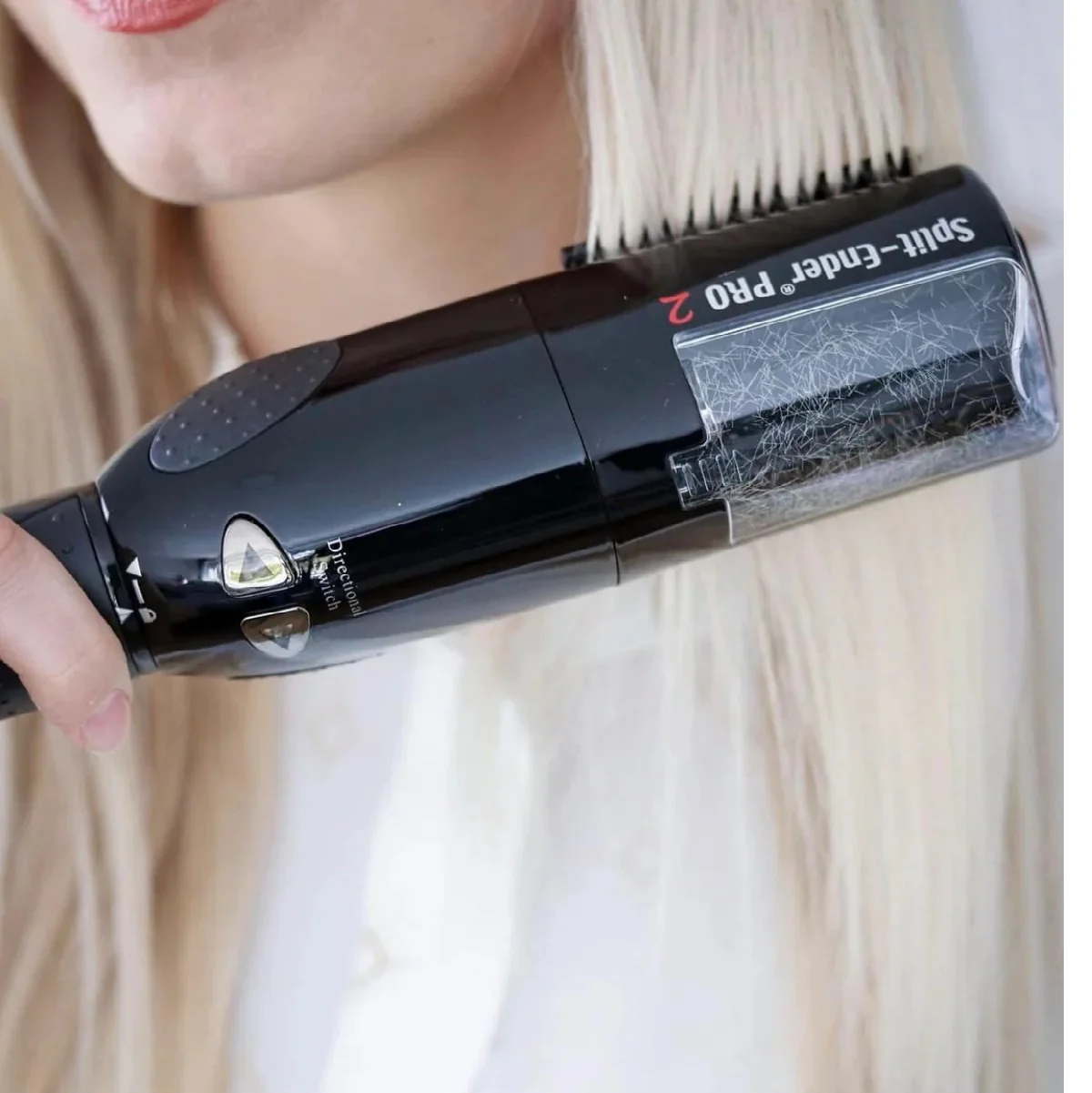 La nueva tecnología “Surgy-Trim”™ recorta de forma segura las puntas abiertas del cabello dañado. La paleta que sostiene el cabello del patentado Split-Ender PRO2 está especialmente diseñado para guiar el cabello y fluye uniformemente a través de fijadores que aseguran y guían cada movimiento, forzándolos a pararse directamente cuando alcance el centro de la paleta.