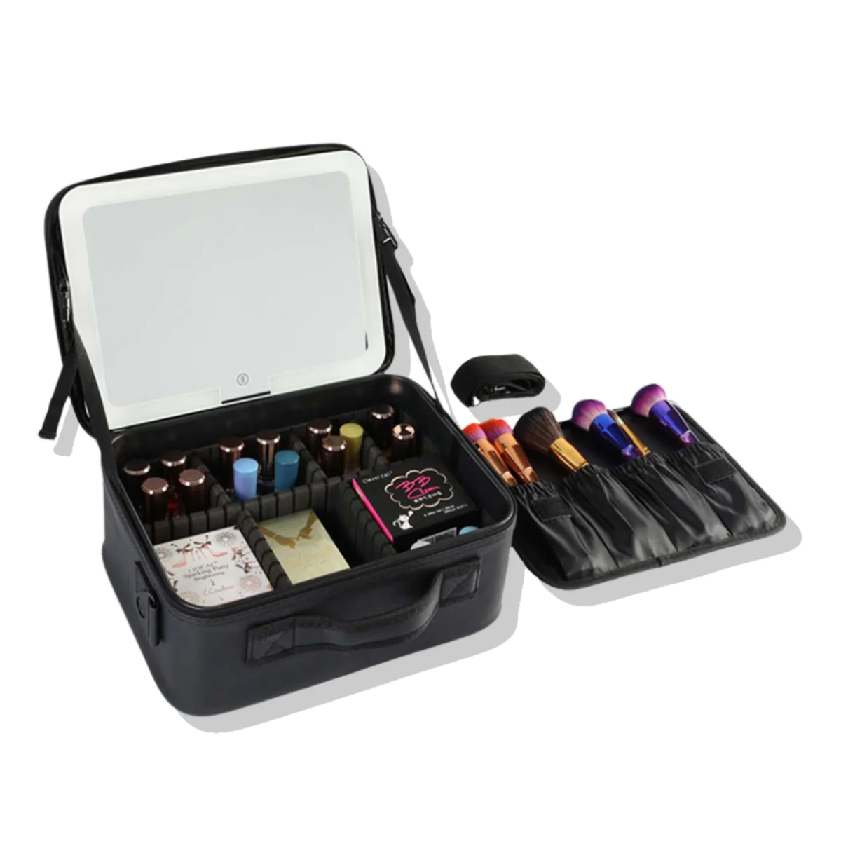 Además, dispone de un compartimento especial para tus brochas, manteniéndolas protegidas y accesibles.