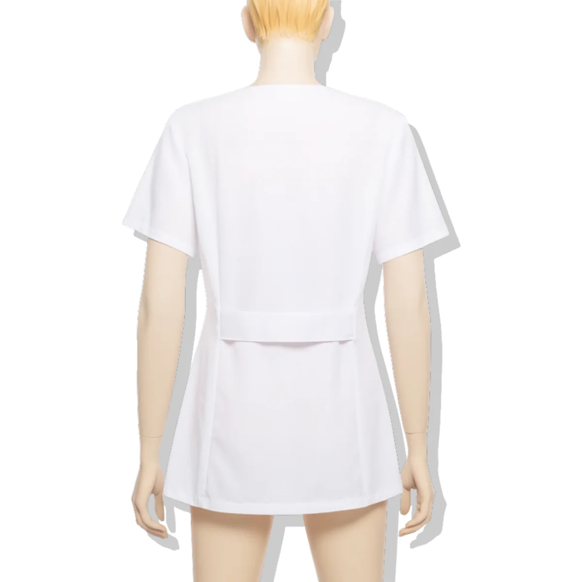 El delantal blanco Ricco talla L es ideal para proteger la ropa durante la realización de servicios en salones de belleza y peluquerías.