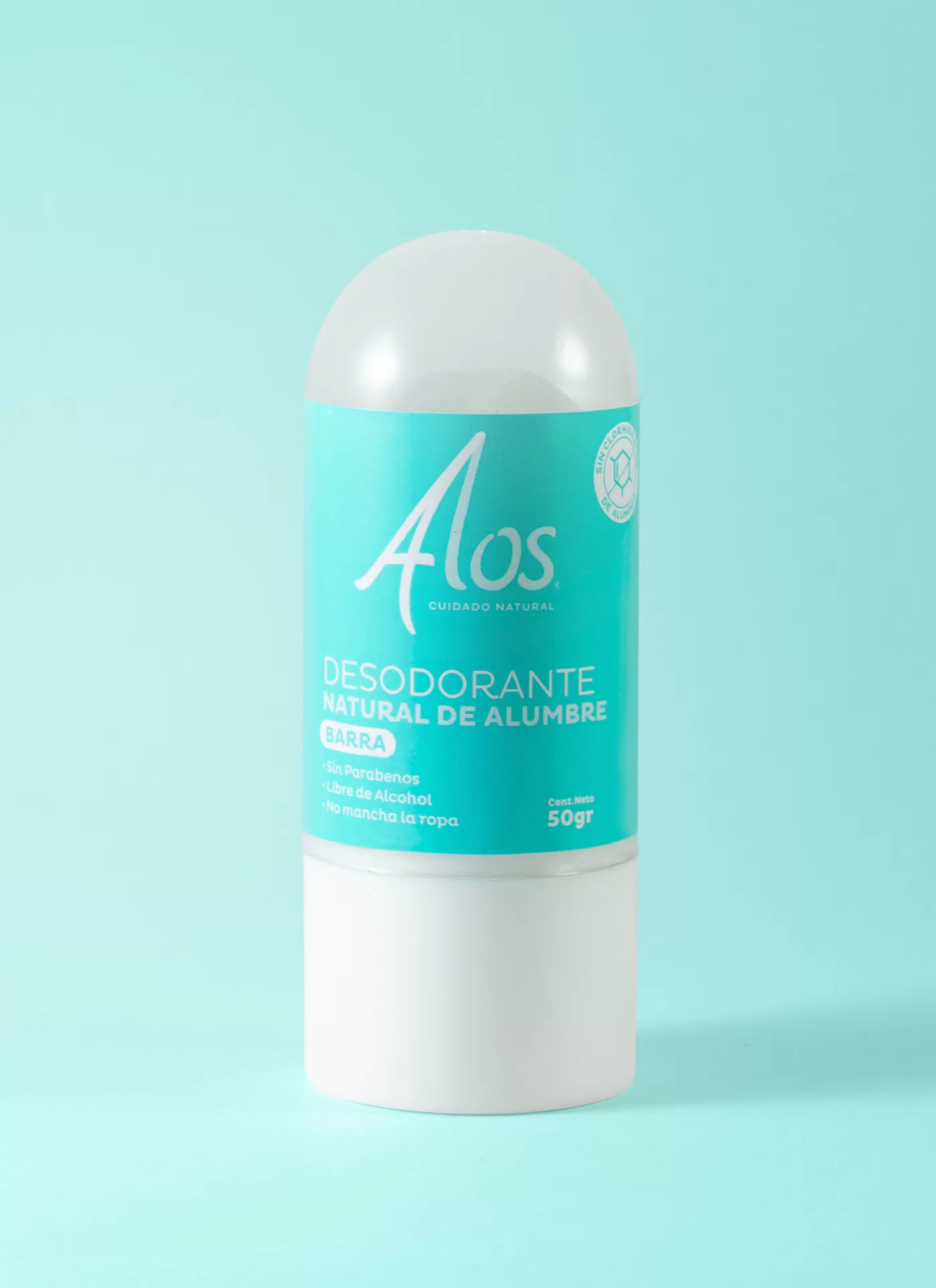 Barra Desodorante Natural de Alumbre, sin componentes químicos que perjudican tu salud. No contiene clorhidratos de aluminio (compuesto relacionado con el cáncer de seno y presente en antitranspirantes), parabenos ni alcohol. Hecho con ingredientes 100% naturales y ecológicos.