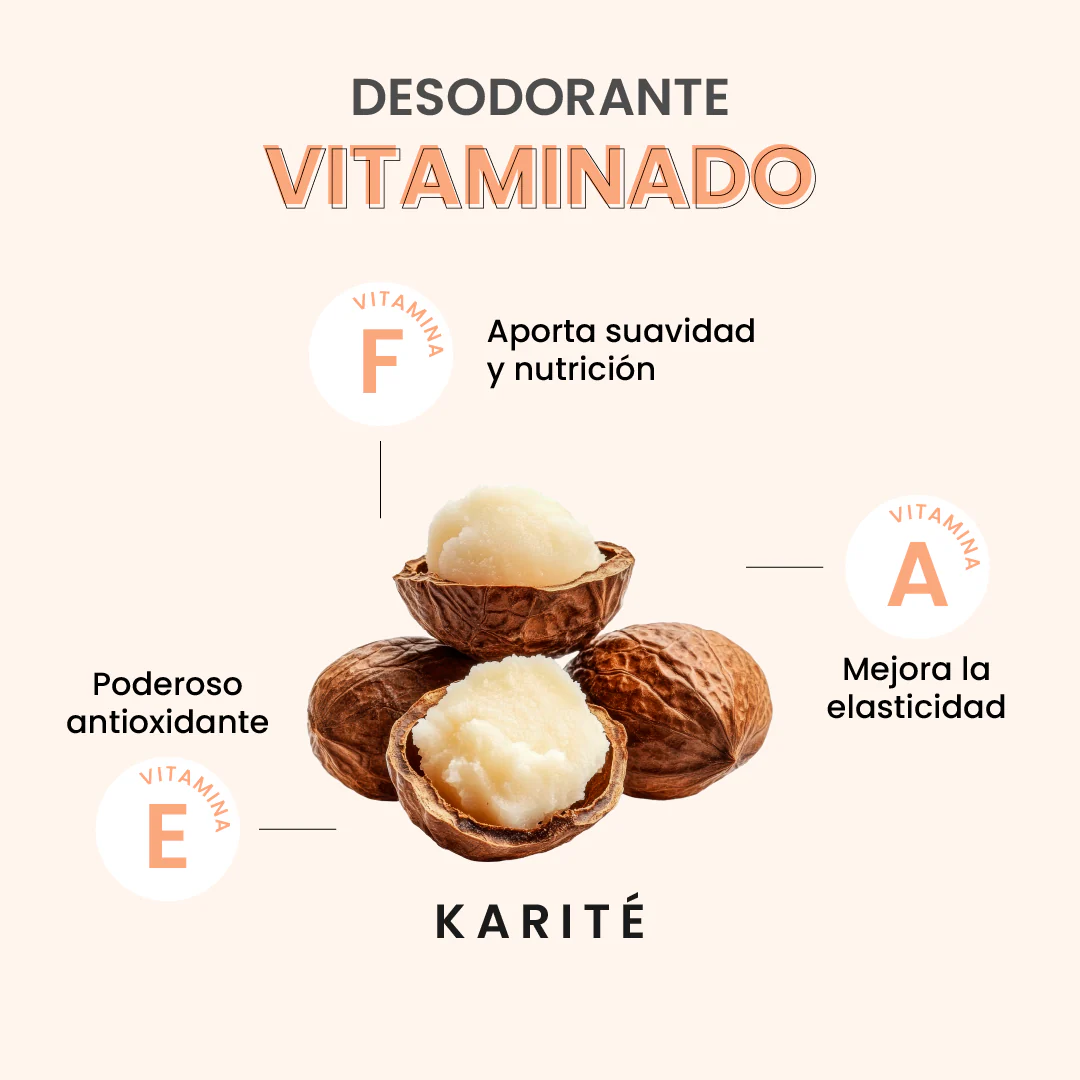 • SIN ALUMINIO A diferencia de otros desodorantes que irritan o tapan los poros, nuestra gran ventaja es que no tapa los poros por ser natural, además tiene magnesio y mantequilla de Karité por lo que tu piel se va a mantener hidratada y humectada.