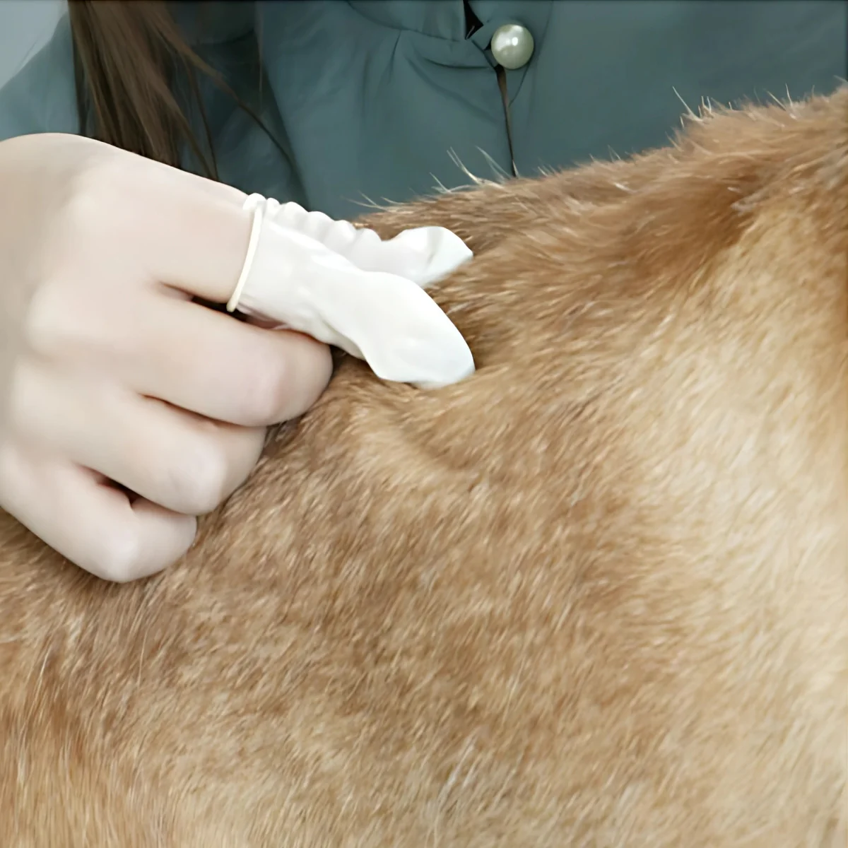 Fundas desechables de látex para los dedos que permite dar un mejor agarre del pelaje suelto de tu mascota sin dañarlo.