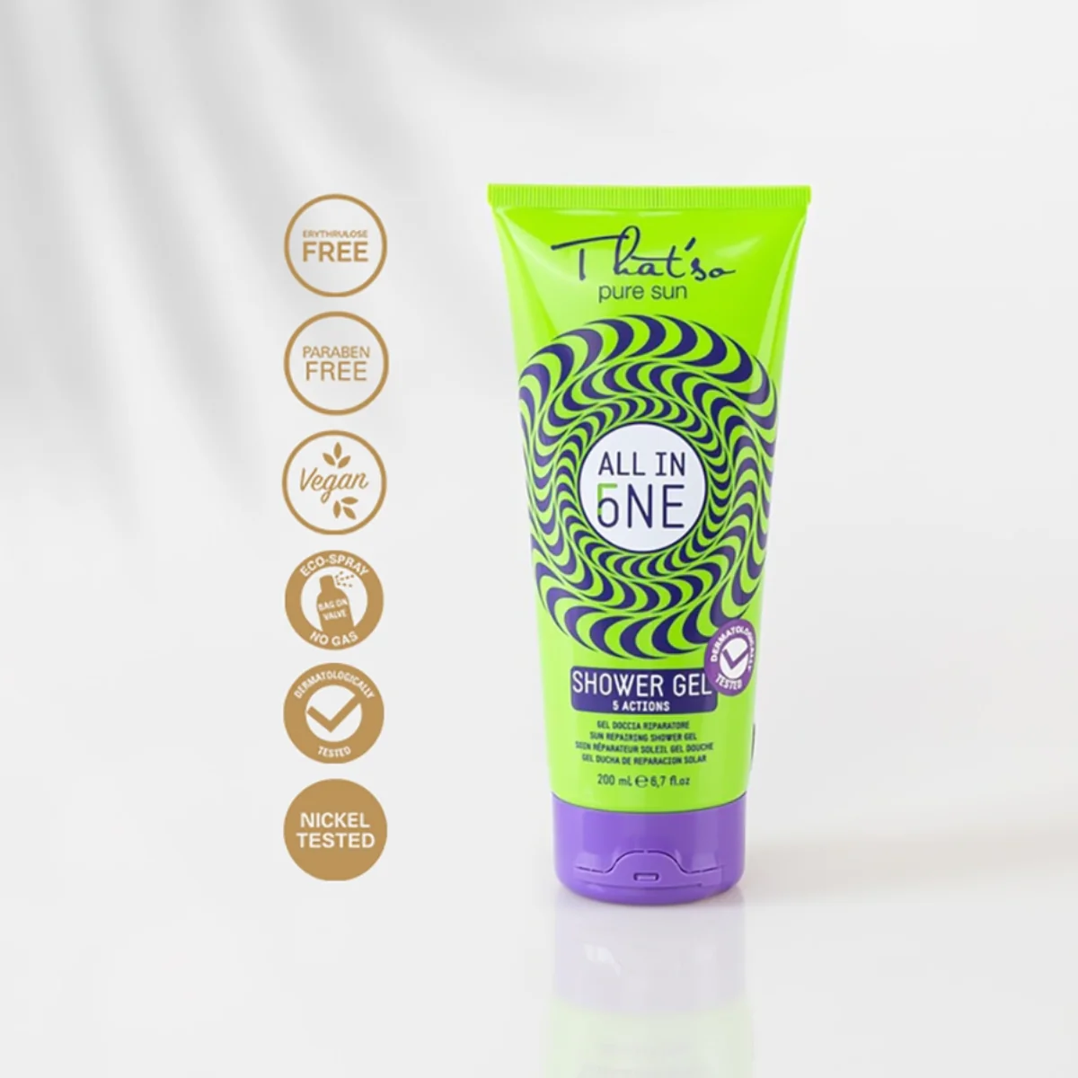 El All In One Shower Gel de That’so es un gel de ducha diseñado para limpiar suavemente la piel después de la exposición solar o la actividad física al aire libre.