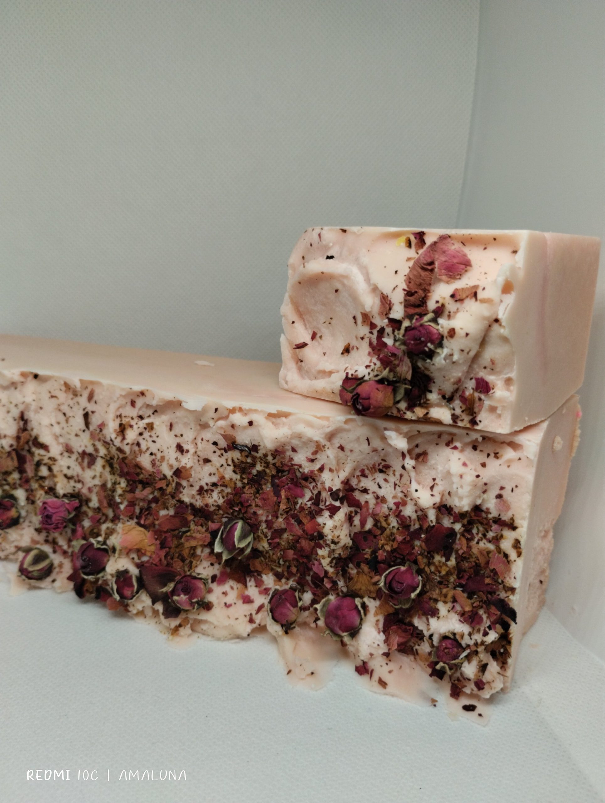 Su base de aceite de Oliva y Rosa mosqueta esconde la potencia de los pètalos de Rosa . Cultivamos nuestras propias Rosas por ello siempre digo que la elaboración de esta jabón comienza en el campo,recolectamos con cariño cada rosa para macerarla en rico aceite de oliva y así de manera natural obtener sus beneficios. Con este aceite mágico y vino elaboramos uno de los jabones más lujosos y activos de los que no se encuentran.