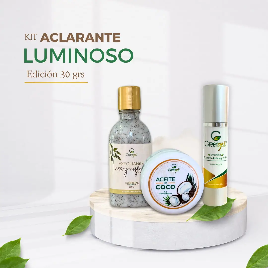 Si buscas una solución natural para aclarar manchas y revitalizar tu piel, el Kit aclarante luminoso (edición 30grs) es tu mejor aliado. Diseñado para mejorar visiblemente el tono de la piel, este kit ayuda a eliminar células muertas, hidratar profundamente y devolver la luminosidad natural a zonas opacas o con pigmentación irregular.