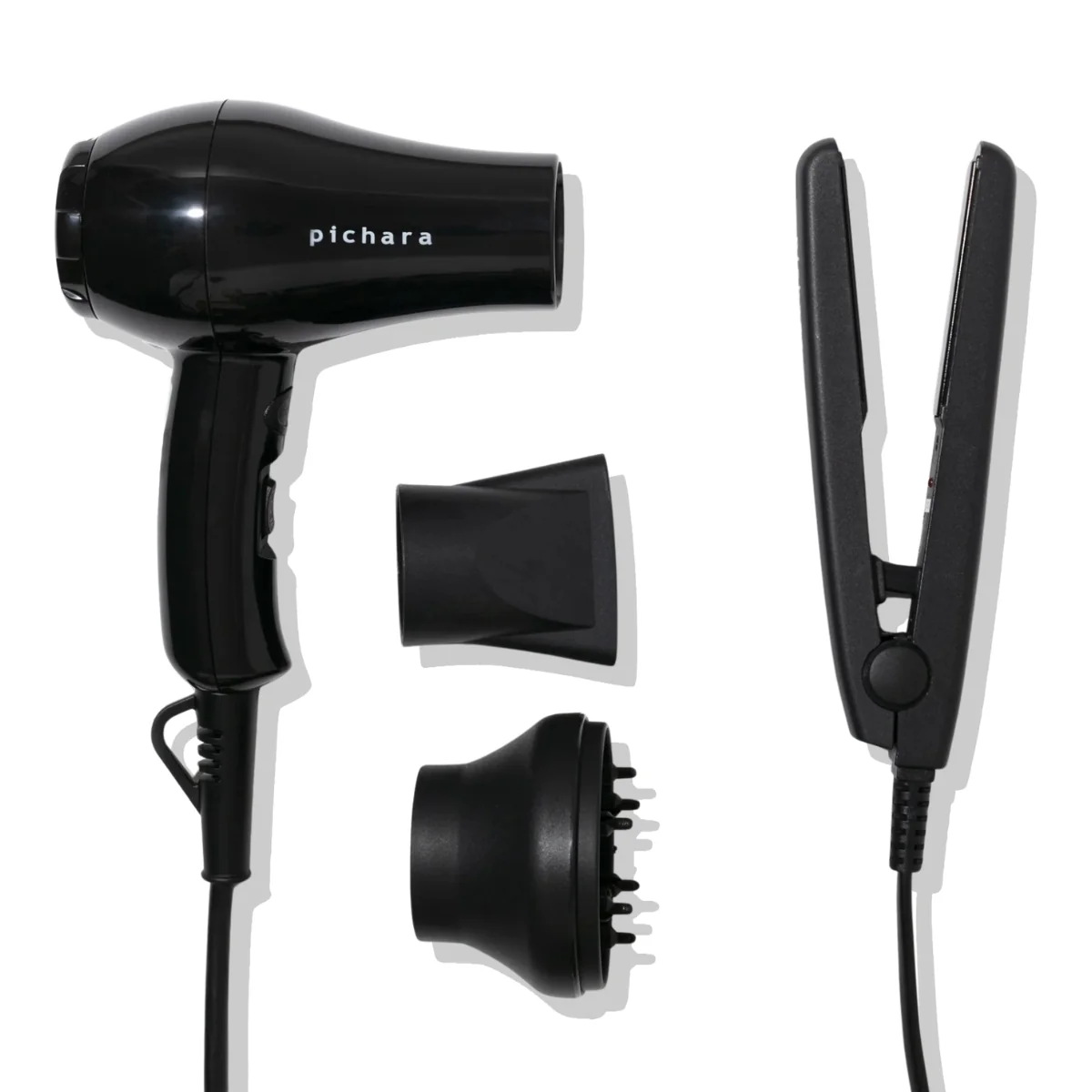 Set de Viaje Mini secador con 2 difusores + Mini Plancha Contiene: