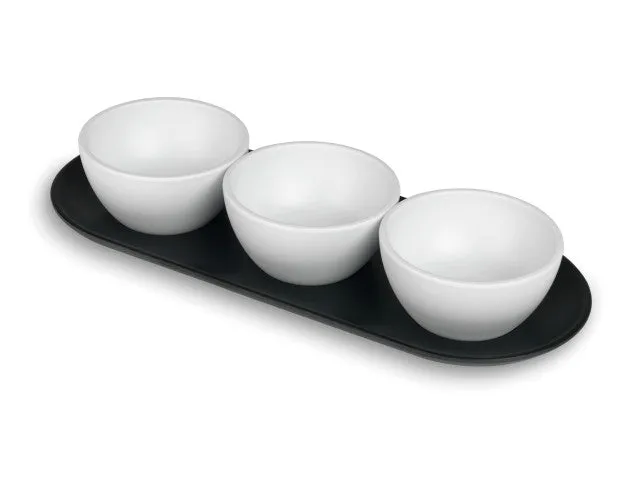 Bandeja con 3 bowls fabricado en melamina de máxima calidad. Capacidad del bowl: 120 ml.