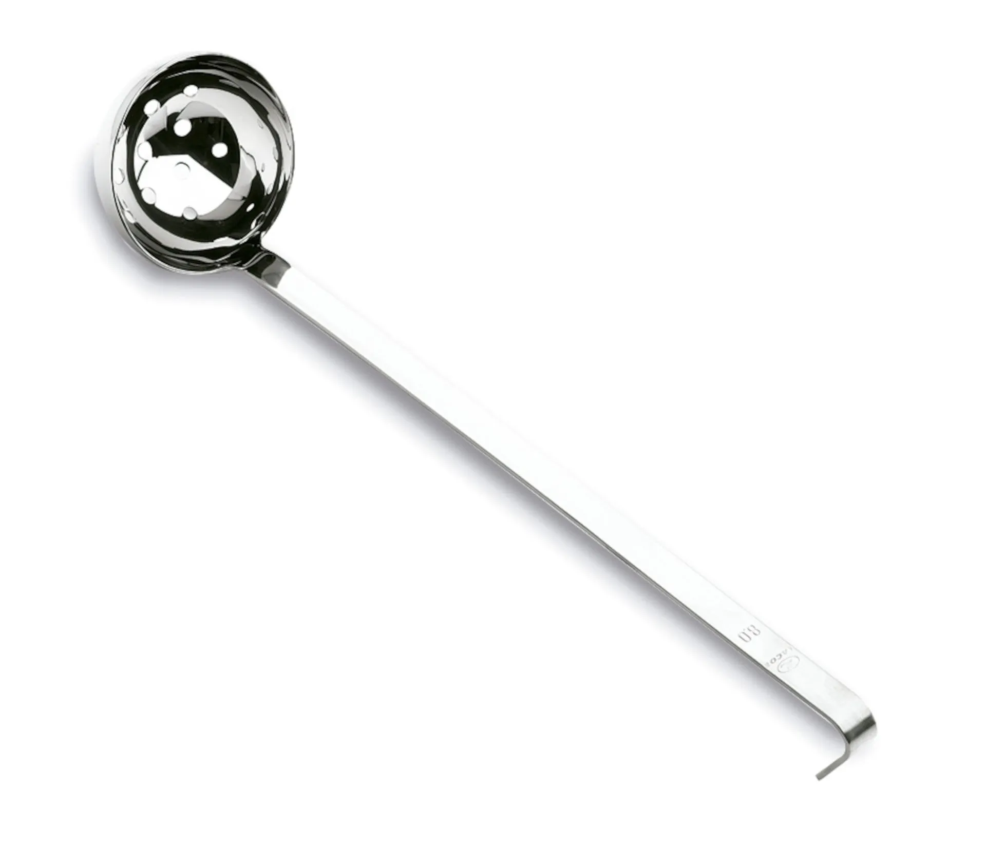 El cacillo perforado pertenece a la colección de utensilios UP fabricados en acero inoxidable de gran calidad.