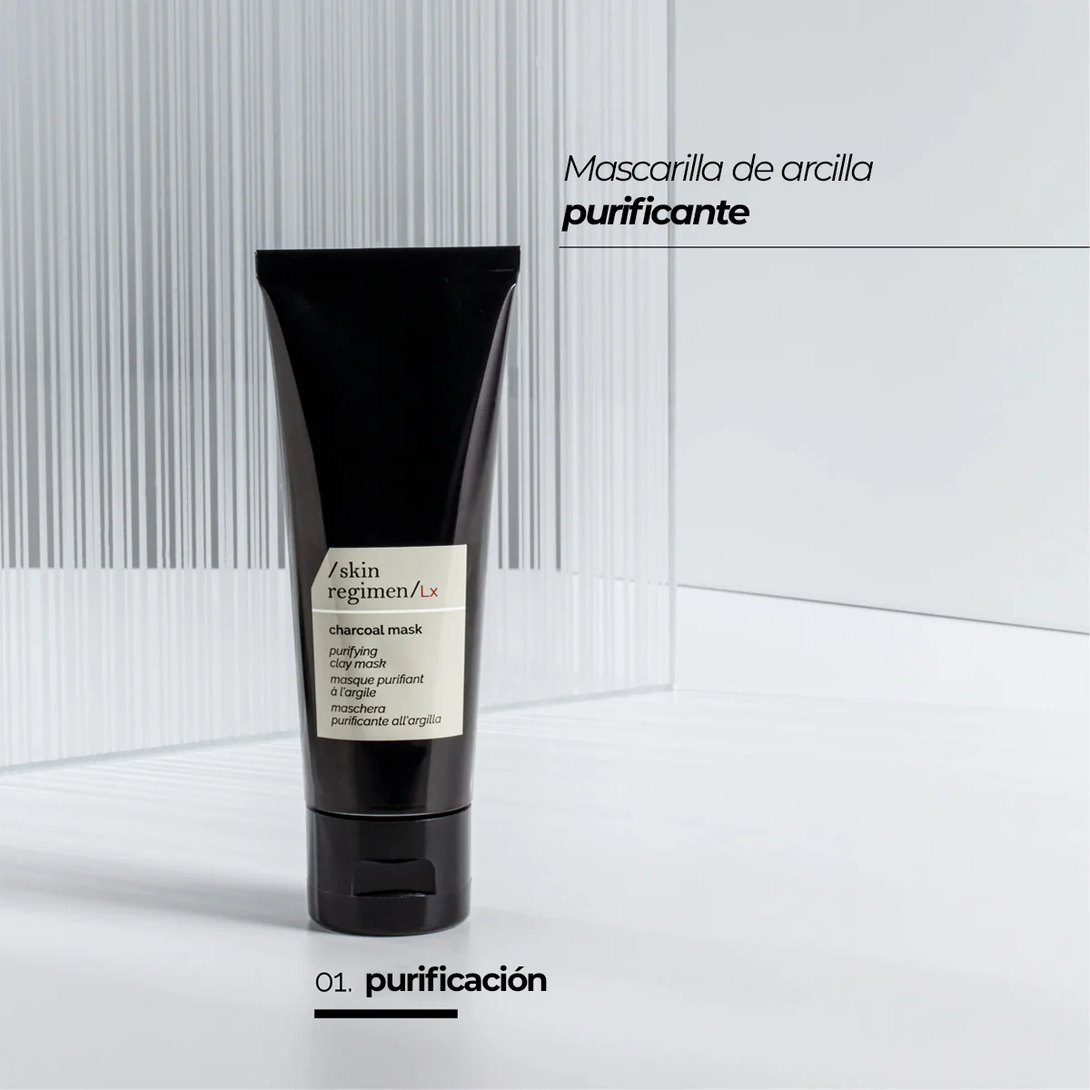 Paso 1: Mascarilla Purificante Charcoal – Purifica y suaviza.