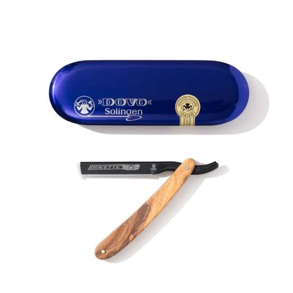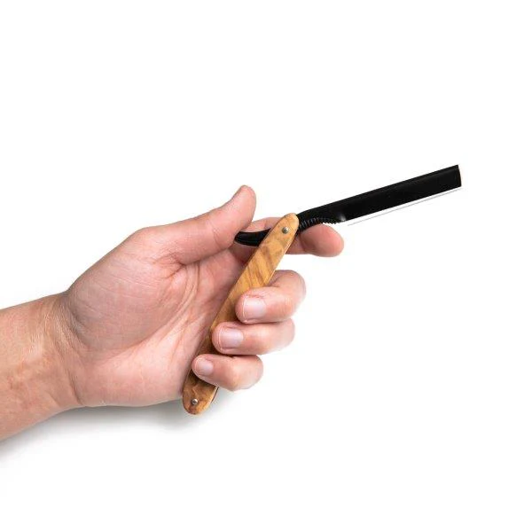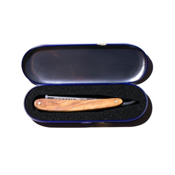 Navaja de afeitar con cuchillas intercambiables. Fabricada con aluminio ligero y refinado con un mango de madera de olivo granulado.