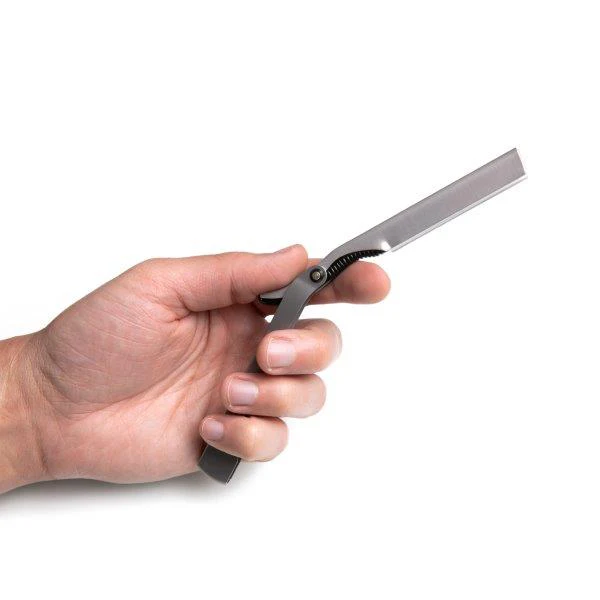 Navajín de afeitar con cuchillas intercambiables. Debido a su acero inoxidable y construcción de aluminio lo hace adecuado para usar con desinfectantes.