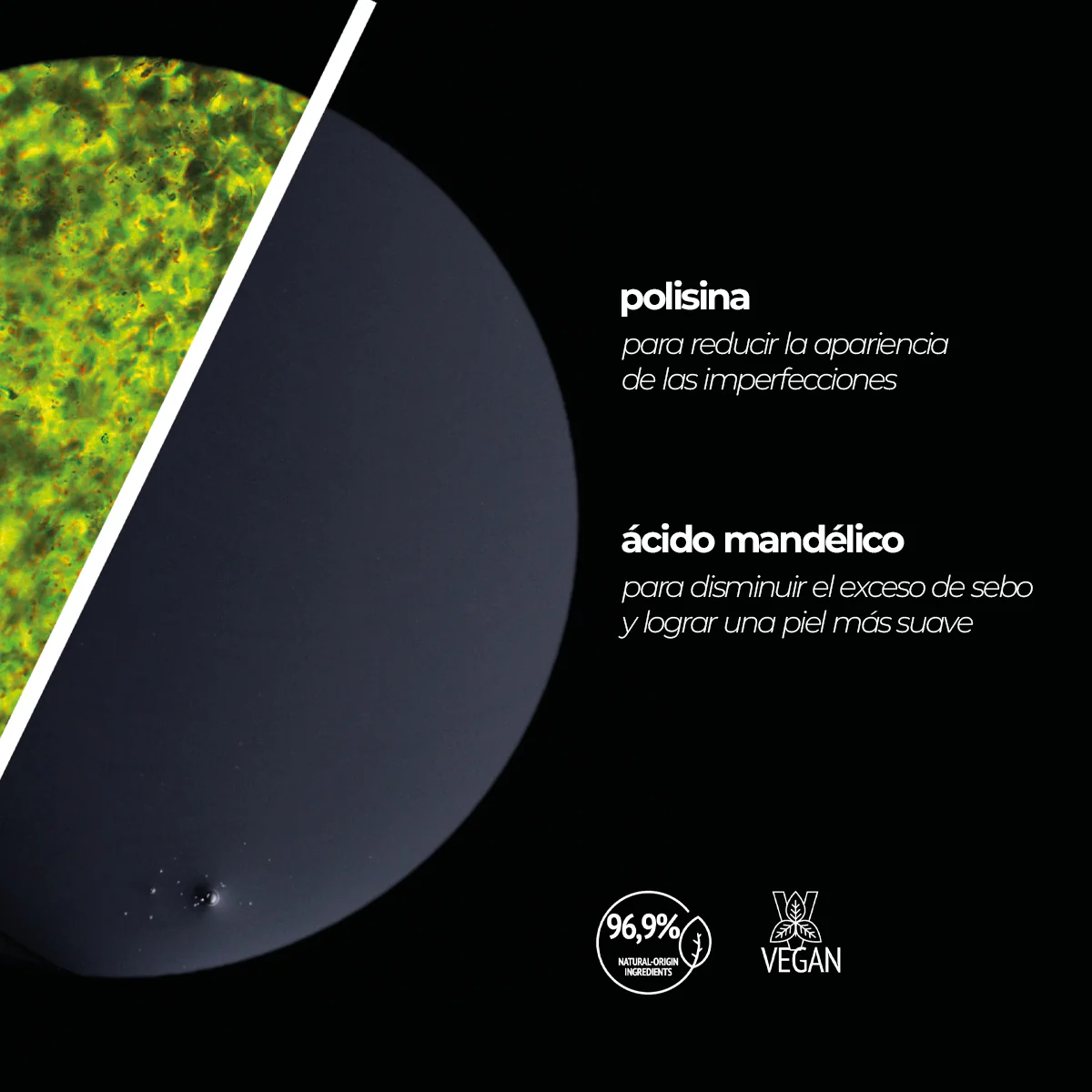 √ Mejora la textura y uniformidad del rostro con ácido mandélico exfoliante.