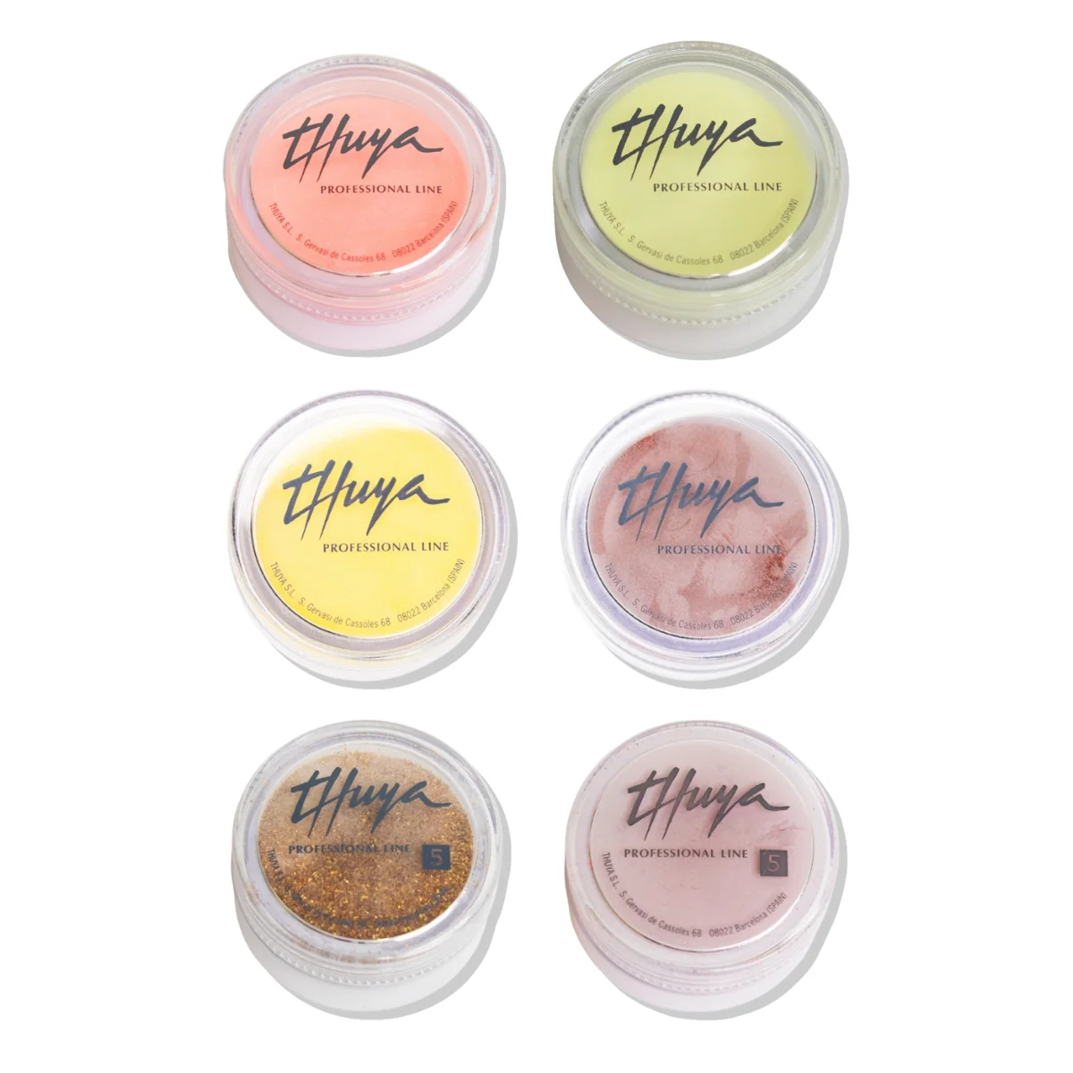 Kit de 6 tonos de polvo acrílico para decoraciones de uñas.