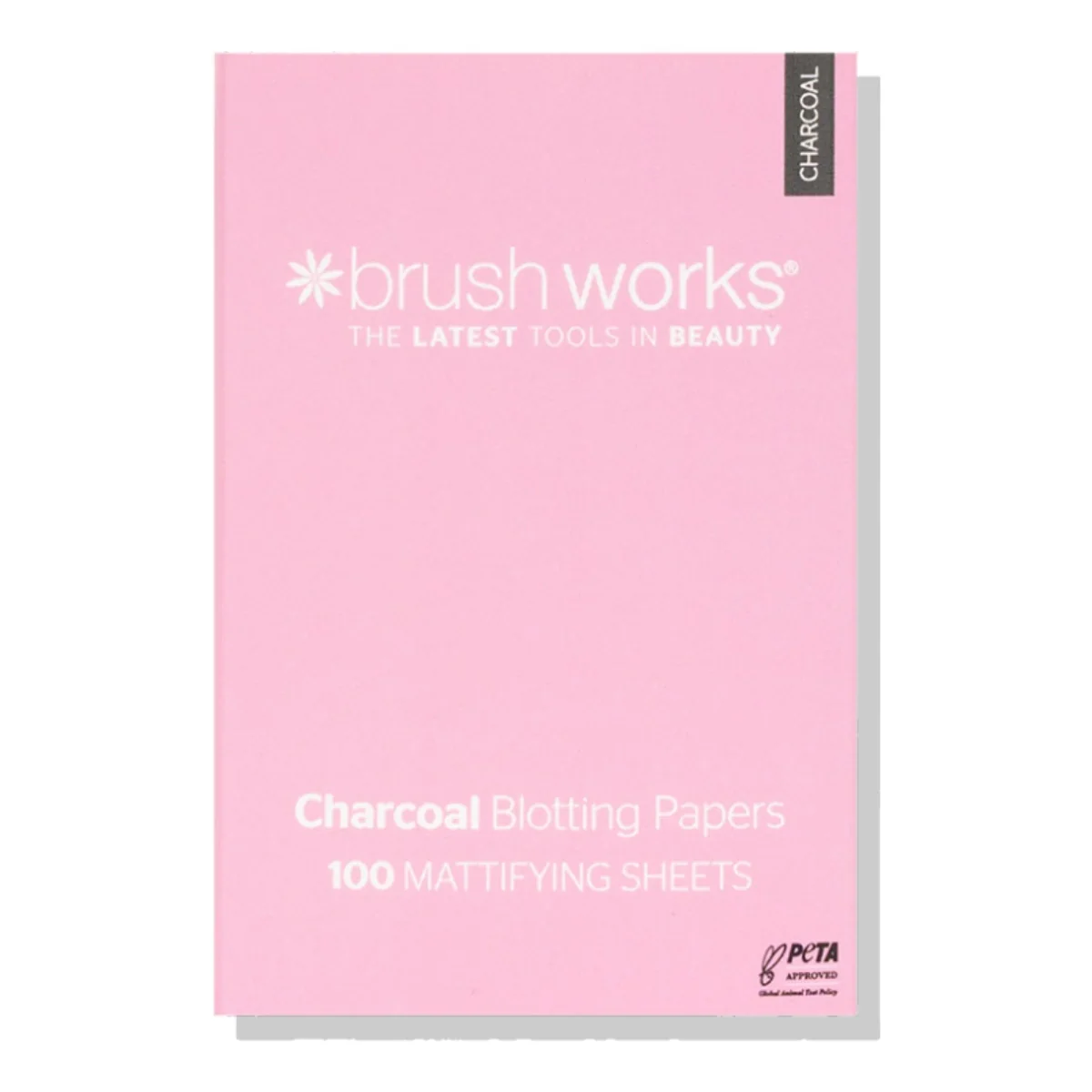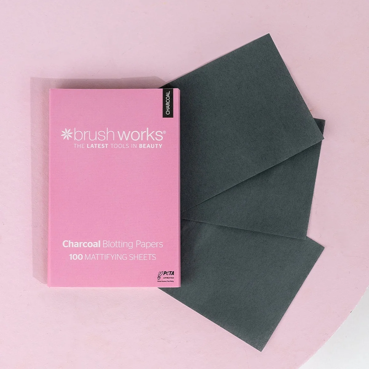 Elimina el exceso de grasa de forma rápida y sin alterar tu maquillaje con los Papeles Matificantes de Carbón Brushworks.