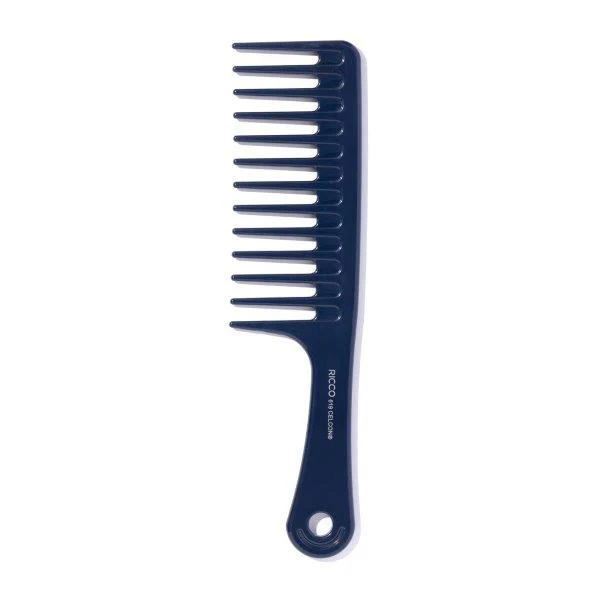 Peine con mango ergonómico y dientes anchos, ideal para desenredar sin tirones, definir rizos o distribuir tratamientos capilares.