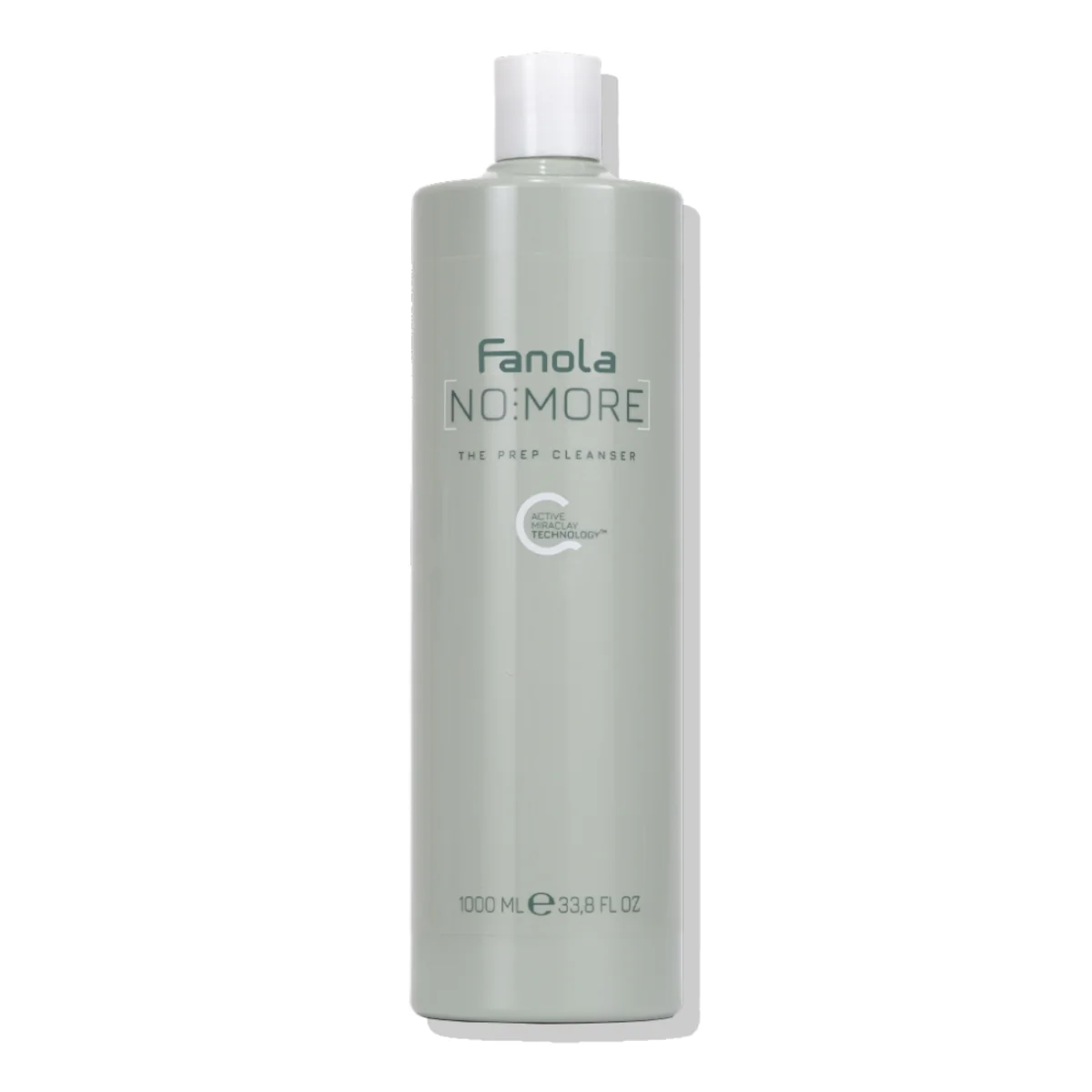 Fanola No More The Prep Cleanser limpia el cuero cabelludo, eliminando la acumulación, las impurezas minerales y los aceites, al mismo tiempo que mantiene la delicada barrera protectora de la piel.