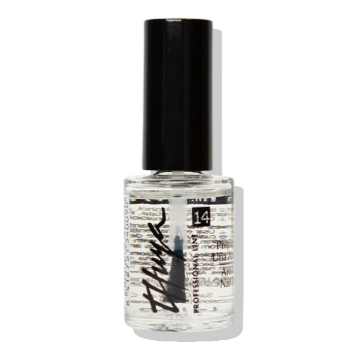 El preparador de uña artificial deshidrata y prepara la uña natural para el esculpido. Favorece la óptima adherencia del gel o el acrílico que se colocará sobre la uña para la construcción. Se aplica a modo de esmalte, con el pincel incorporado.