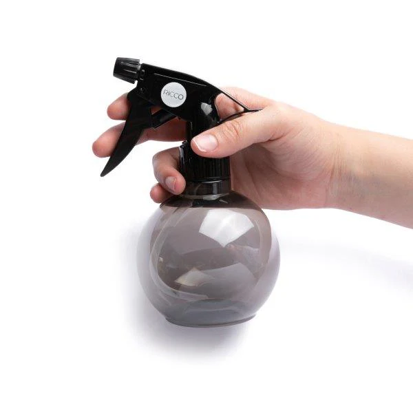 El rociador plástico bolita Ricco de 350 ml es perfecto para humedecer el cabello de forma rápida y uniforme antes de cortes, peinados o tratamientos.