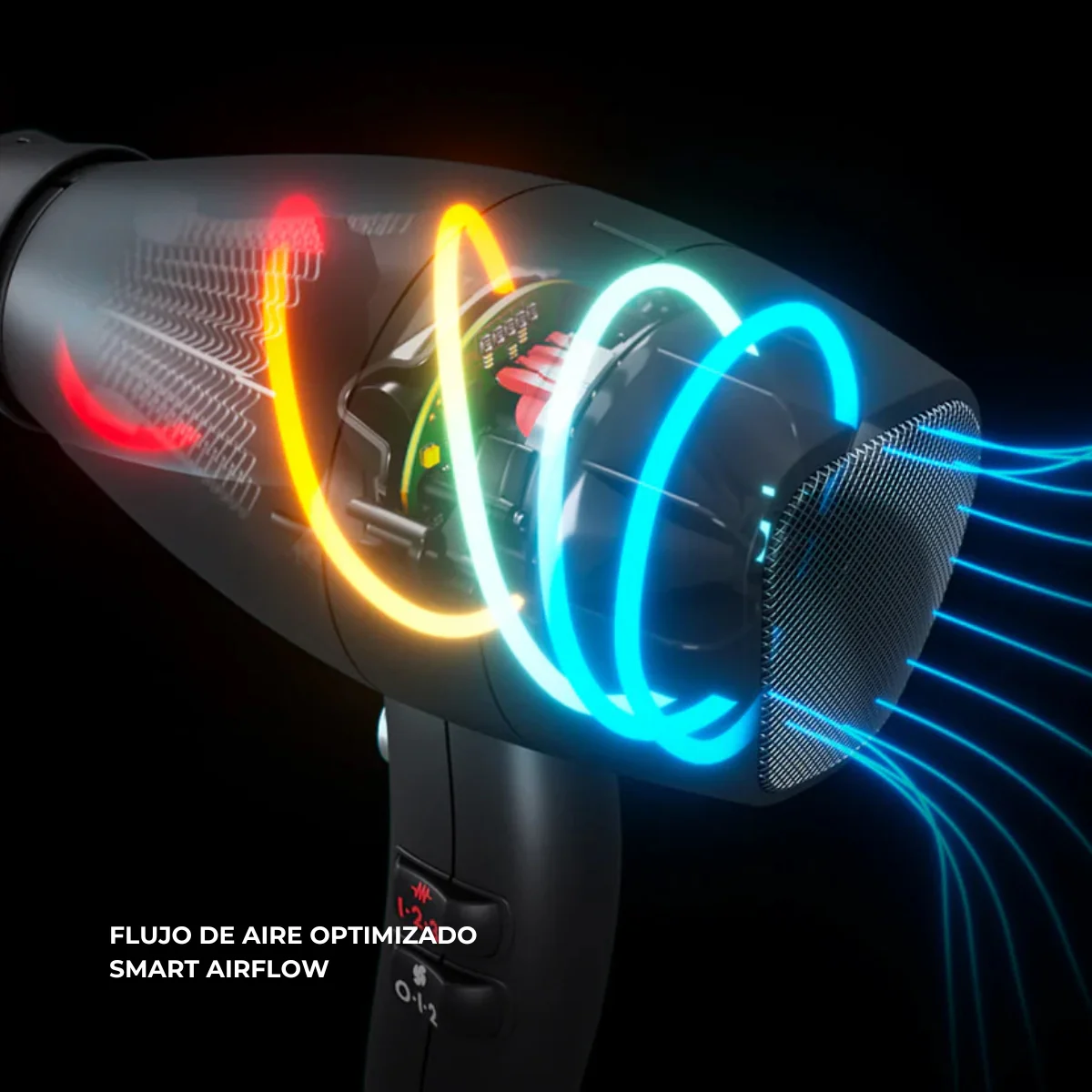 La tecnología Smart Airflow garantiza un flujo de aire aerodinámicamente optimizado y, por tanto, el máximo rendimiento de secado con un nivel de ruido mínimo al mismo tiempo.