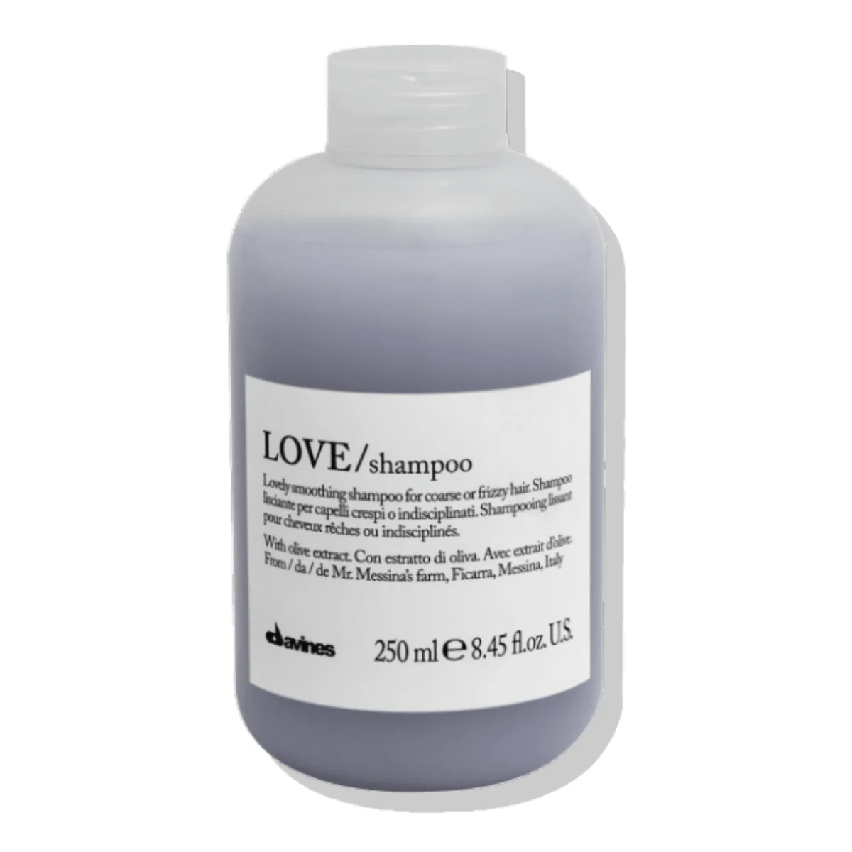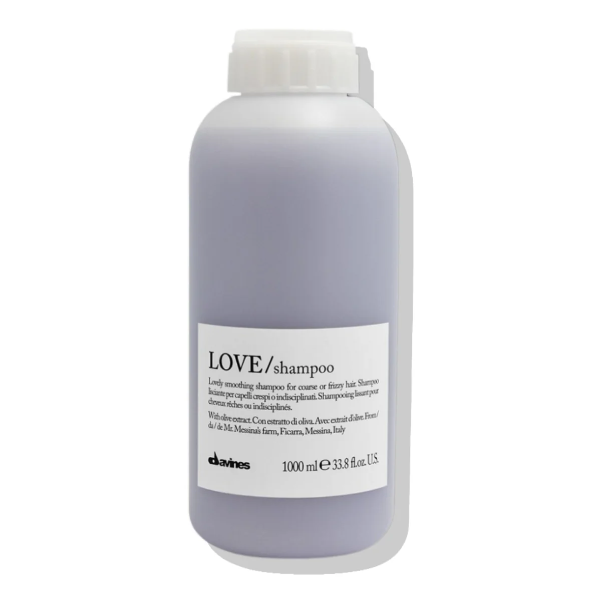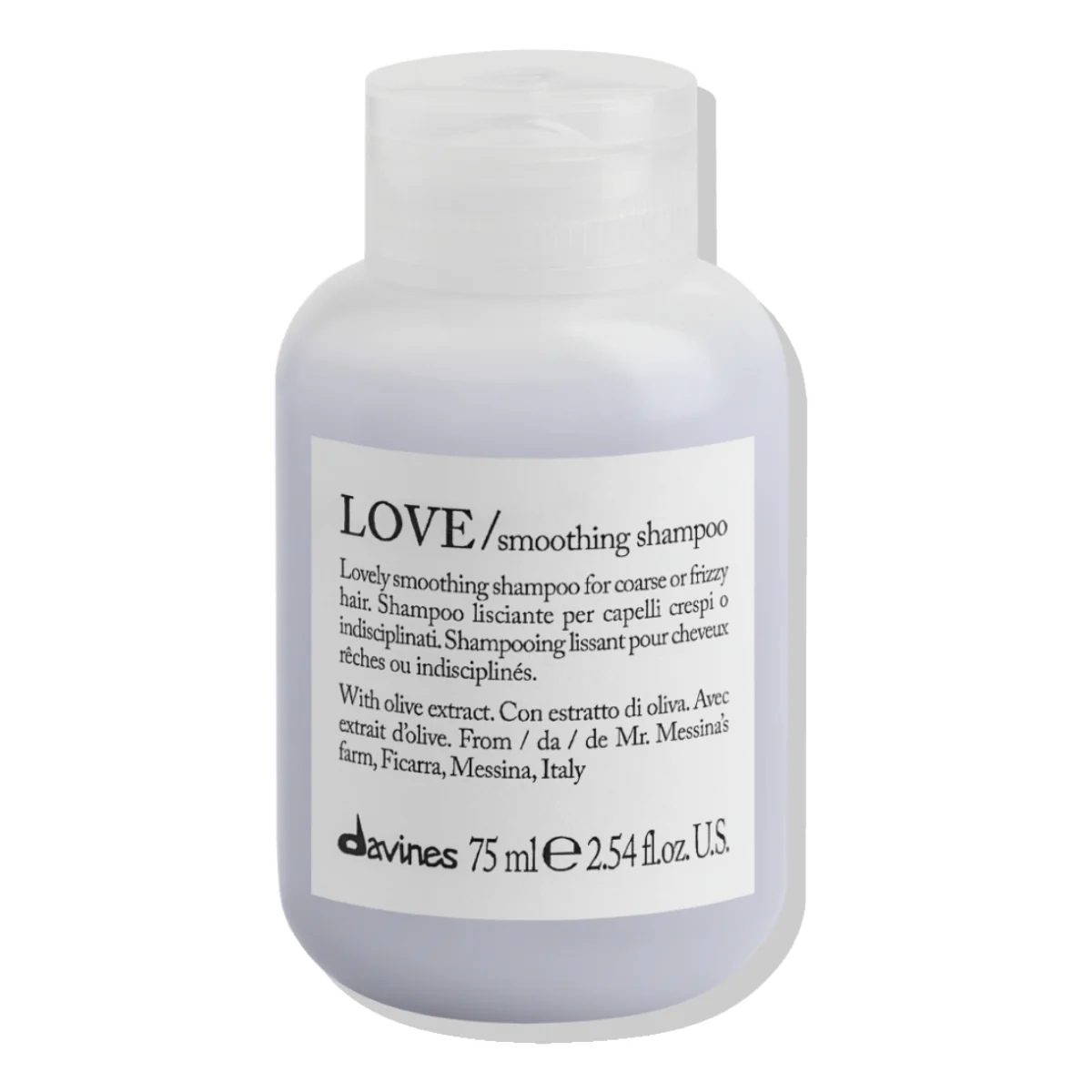 Love Shampoo de la línea Essential Haircare de Davines es un shampoo disciplinante para cabellos encrespados y rebeldes que buscan un look controlado.