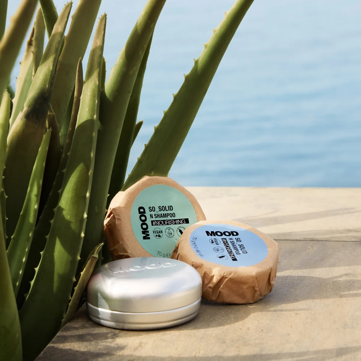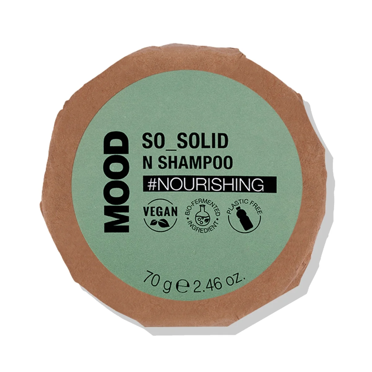 El Shampoo Sólido Mood limpia delicadamente el cabello sin apelmazarlo, ofreciendo el rendimiento de un champú profesional en un formato práctico y ecológico.