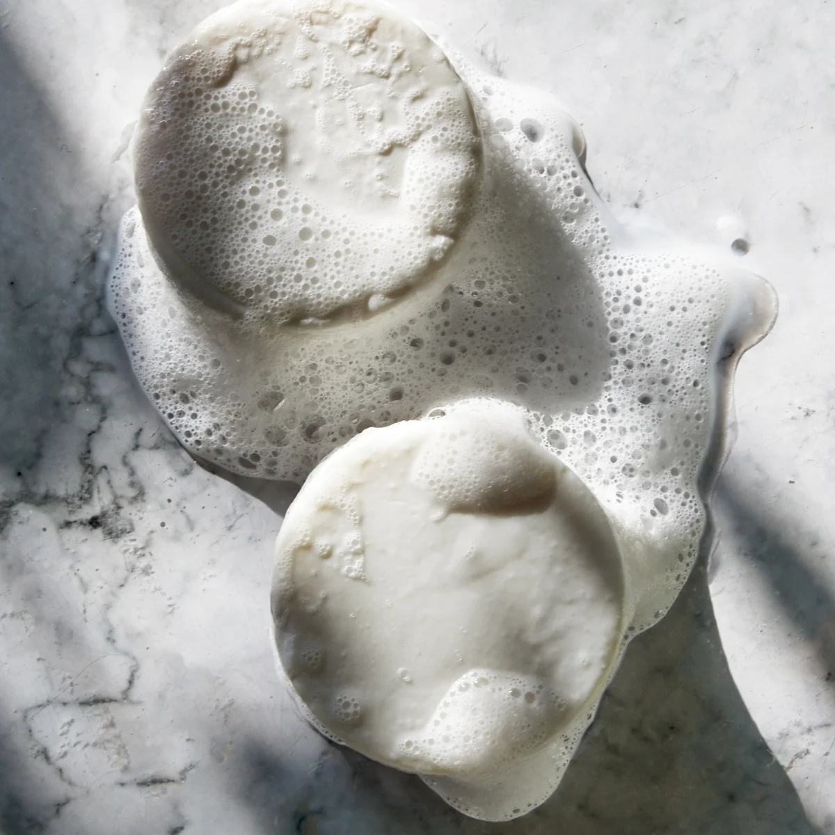 Humedece la barra con agua, frótala entre las manos para generar espuma y aplícala sobre el cabello mojado. Masajea suavemente, enjuaga y repite si es necesario.