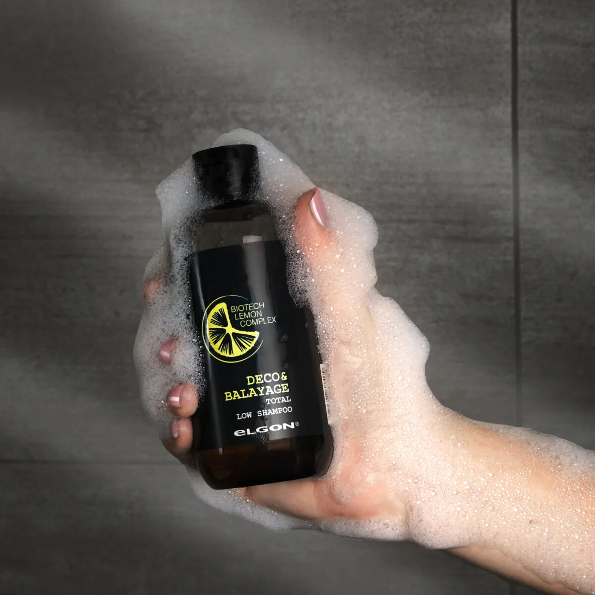 El Shampoo Deco Balayage de Elgon limpia suavemente el cabello sin agredir la fibra capilar, gracias a su fórmula sin sulfatos y con pH ácido.