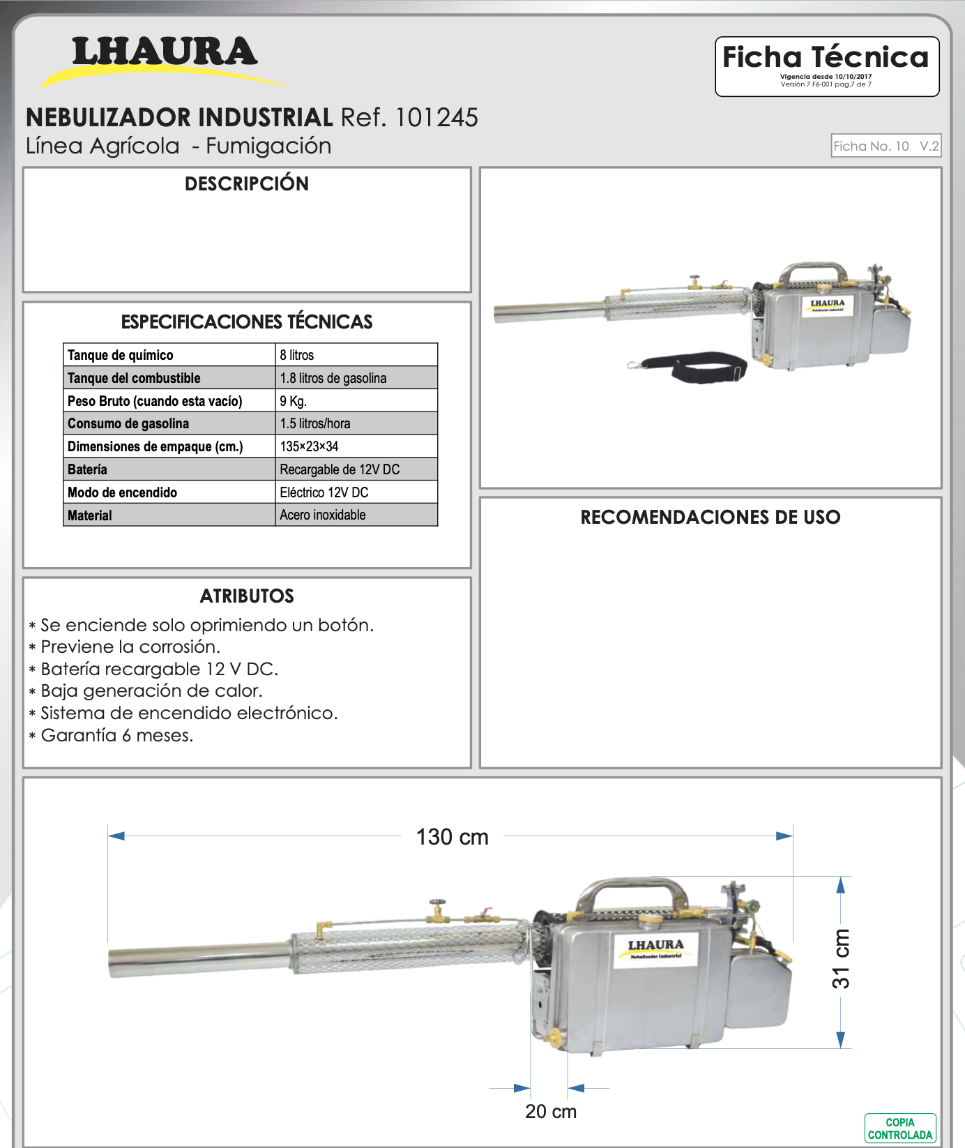 Nebulizador Industrial Lhaura 8 Litros