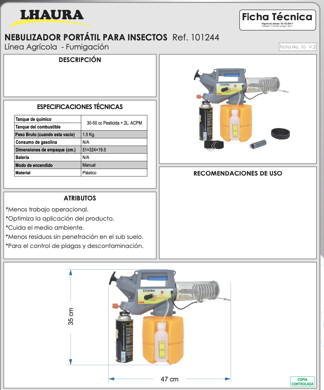 Termonebulizadora Portatil a Gas Lhaura x 2 litros