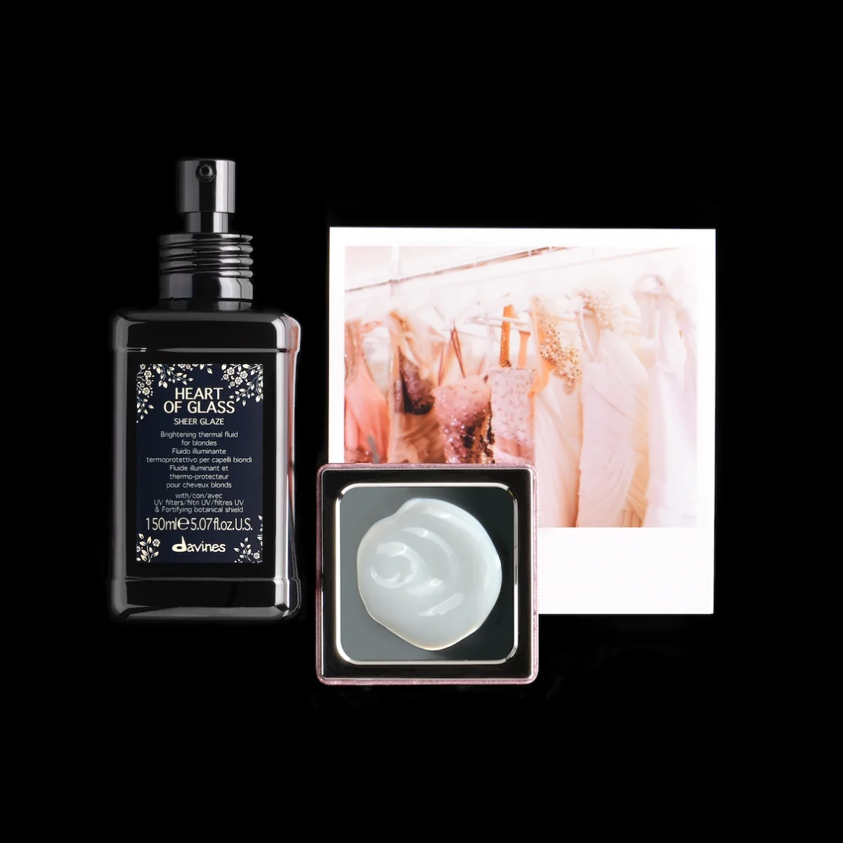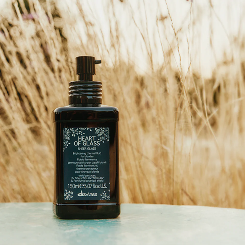 Sheer Glaze es un serum iluminador térmico sin enjuague para rubios que aporta hidratación, brillo y protección contra el calor.