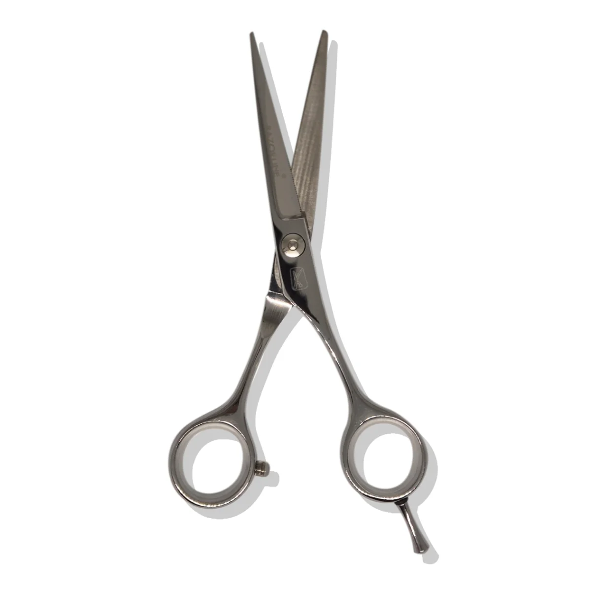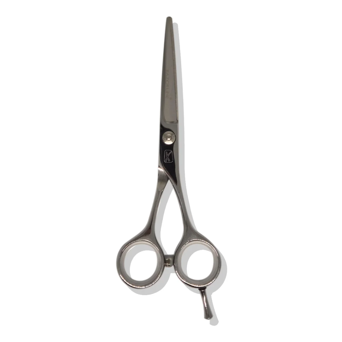 Tijera profesional de corte con filo microdentado, diseñada para asegurar una sujeción firme del cabello y evitar deslizamientos durante el trabajo.