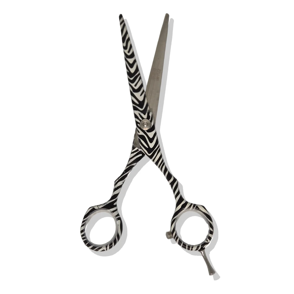 Tijera de corte profesional con diseño estampado tipo zebra, pensada para estilistas que buscan precisión sin renunciar a un estilo distintivo.