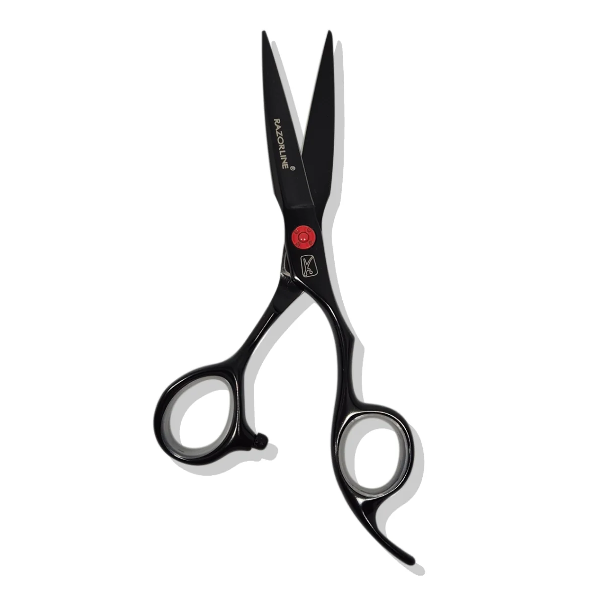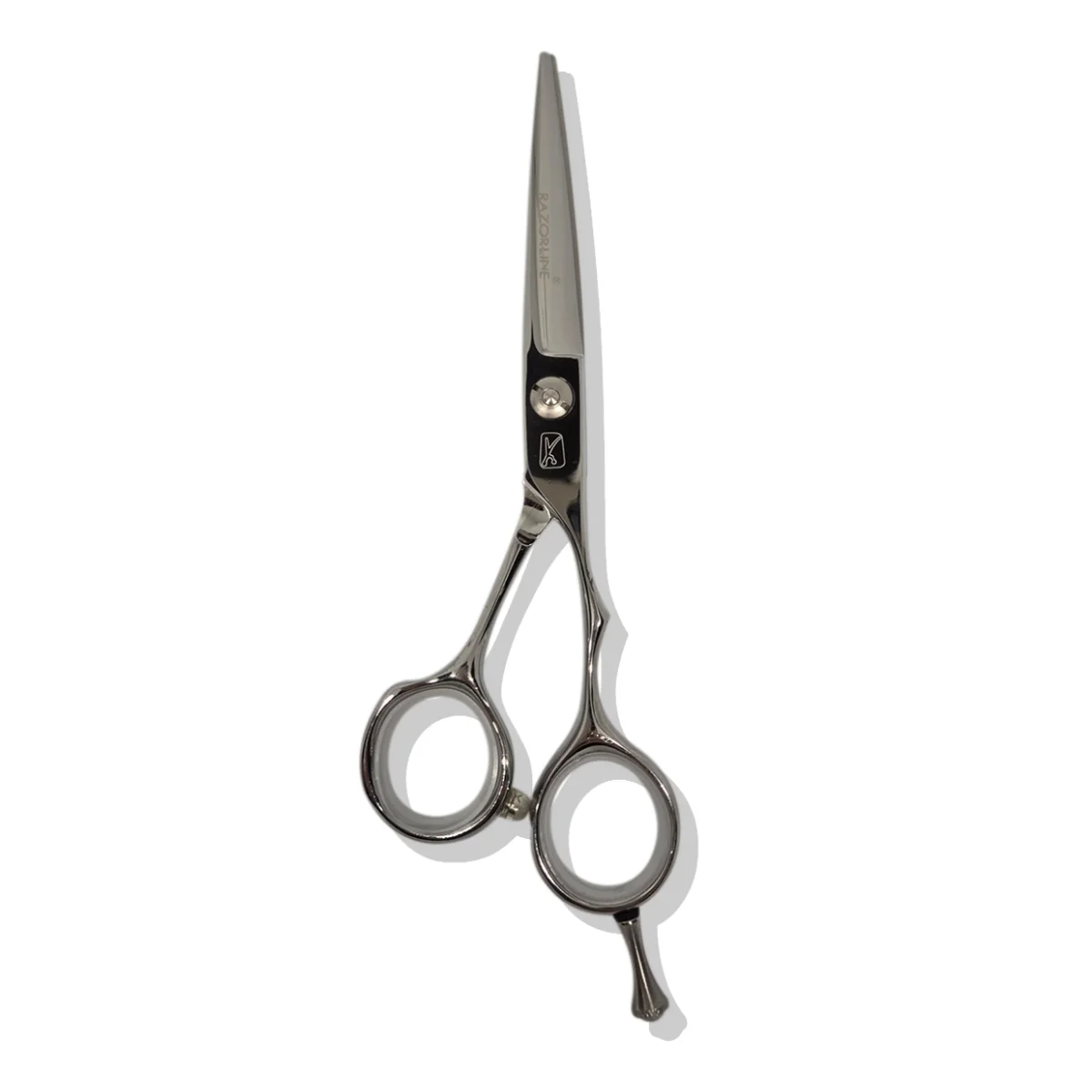Tijera profesional de corte con filo liso, diseñada para realizar líneas precisas, contornos definidos y trabajos de detalle.