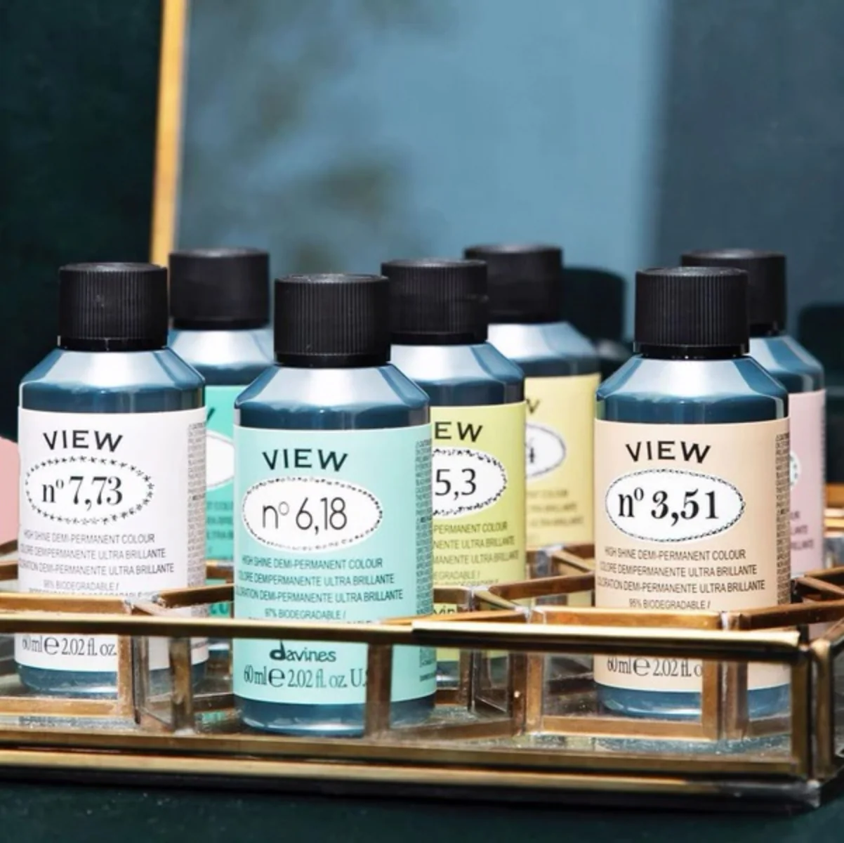 Tintura Demipermanente View sin amoniaco de Davines con pH ácido, asegura un brillo extremo en la fibra capilar y lo fortalece.