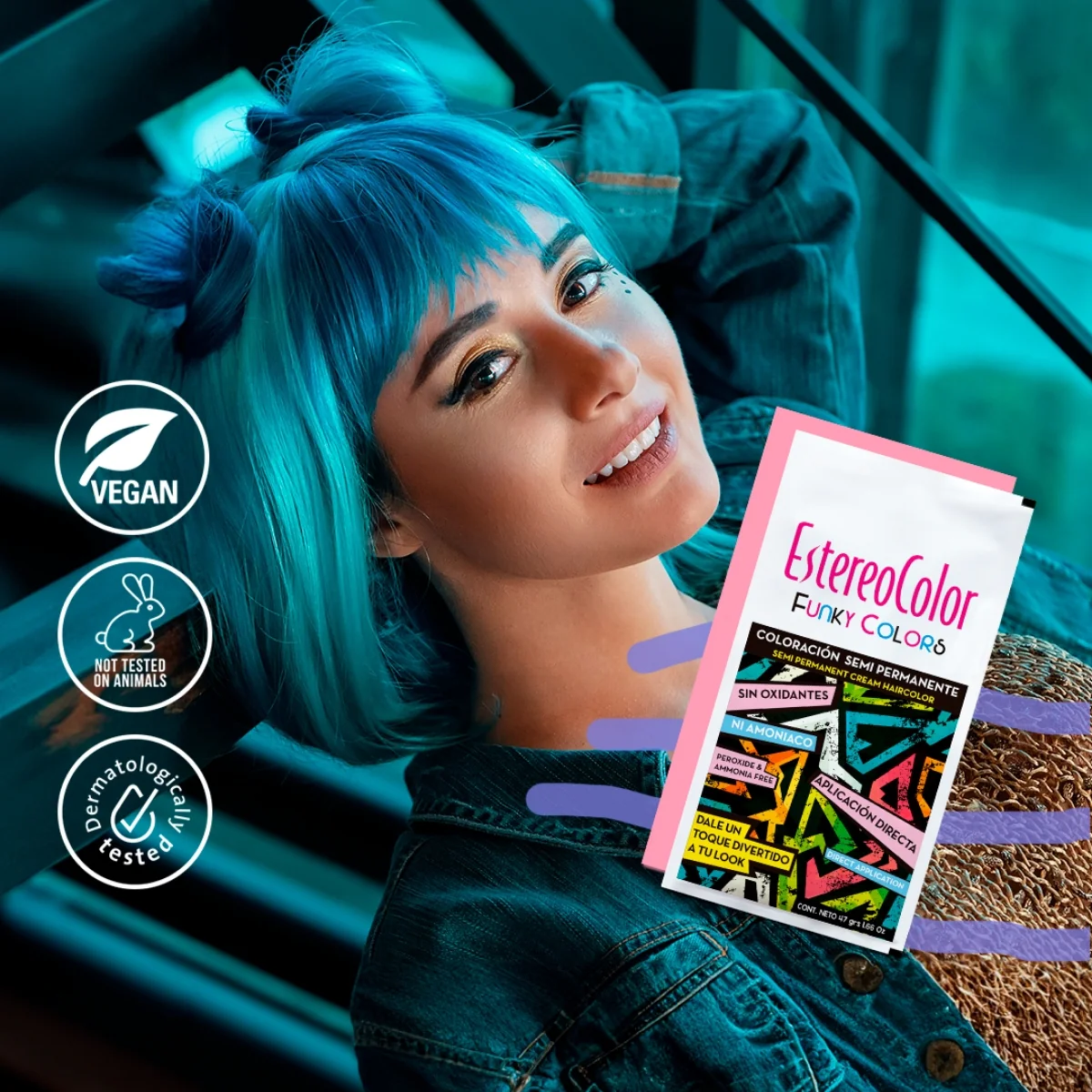 Funky Colors es una coloración Semipermanente de aplicación directa sin oxidante ni amoniaco.