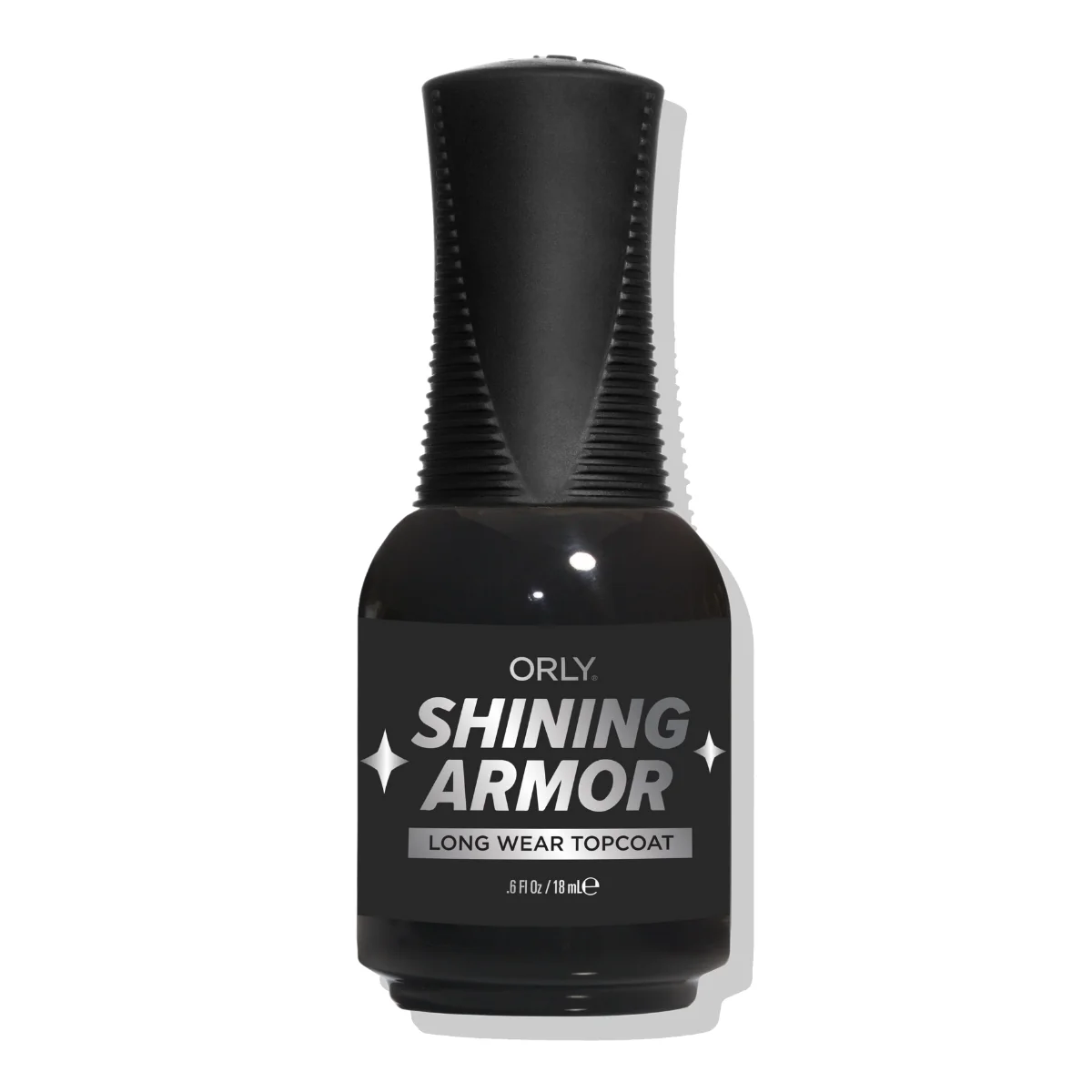 ORLY Shining Armor es un top coat de secado rápido y acabado superbrillante tipo gel para una protección duradera y un brillo resplandeciente.