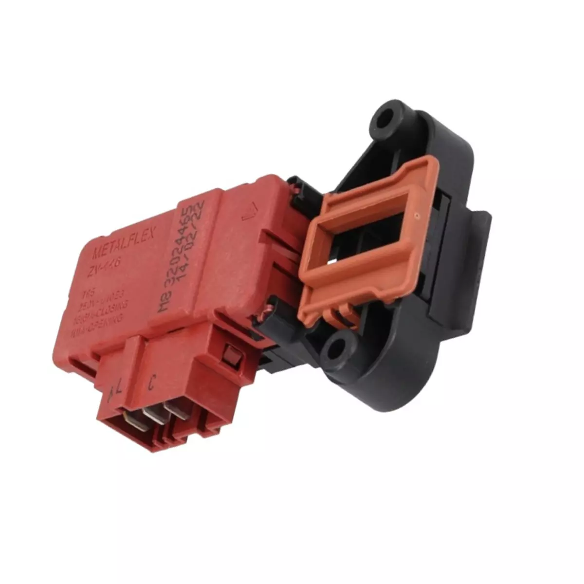 Retardador para cierre de puerta de electrodoméstico de lavado. Esta pieza también hace de interruptor, evitando que el aparato se ponga en marcha cuando la puerta está abierta. En ocasiones, cuando la lavadora no funciona, es porque este recambio está mandando una señal equivocada al módulo del electrodoméstico. metalflek ZV446M5