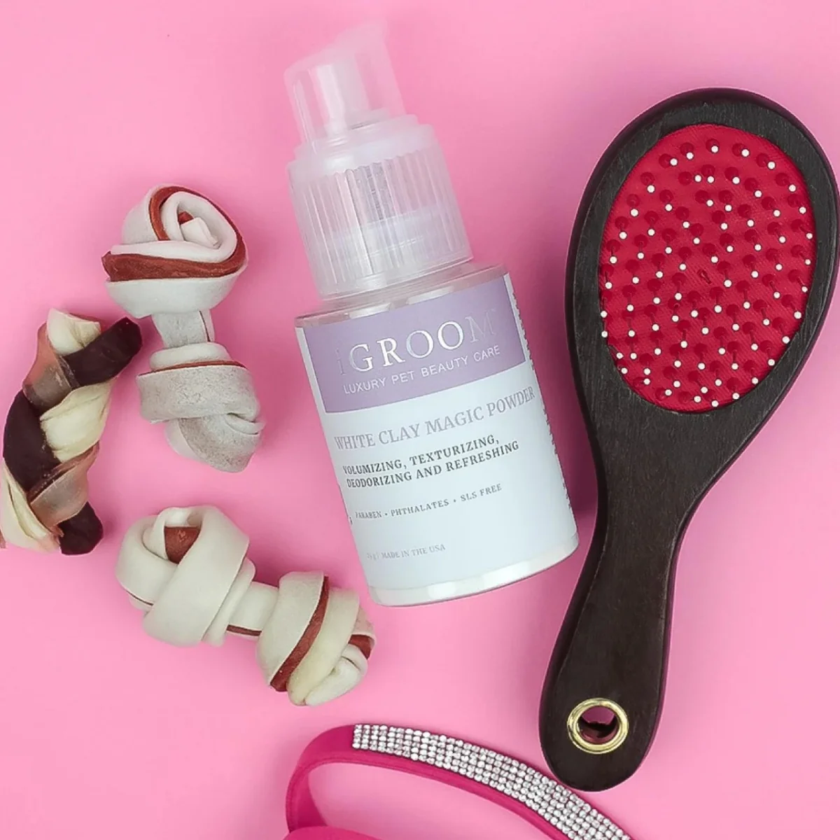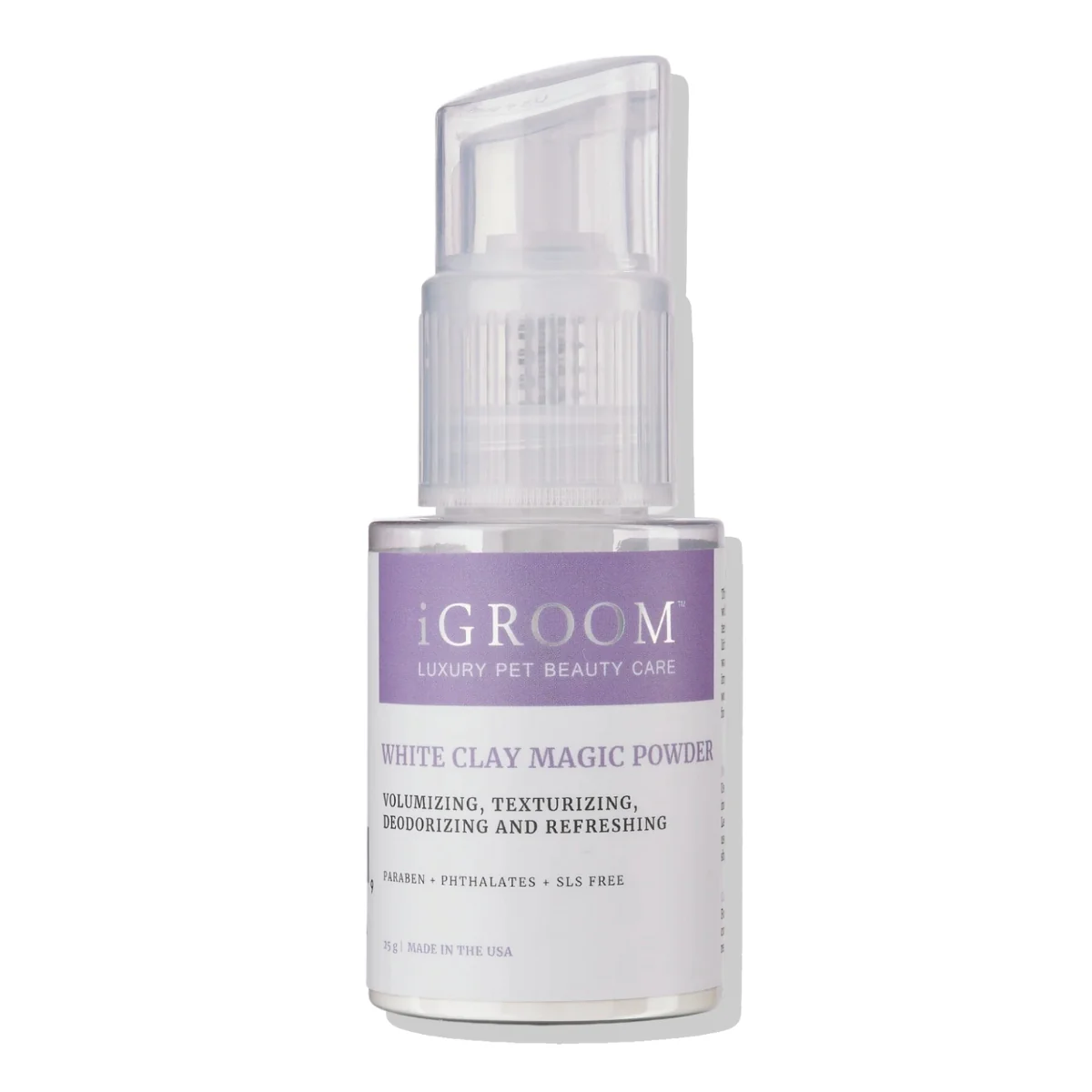 Voluminizador, texturizante, desodorizante y refrescante SIN PARABENOS NI SLS. La increíble fórmula de White Clay Magic Powder de iGroom brinda el máximo volumen y textura con un levantamiento de raíces de alta precisión. También refresca el cabello entre lavados y absorbe el exceso de grasa e impurezas. El polvo mágico de arcilla blanca iGroom funciona para todas las razas y se recomienda para